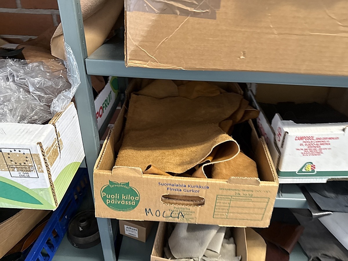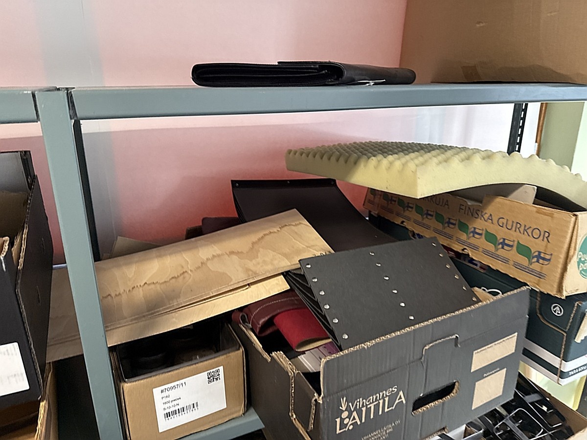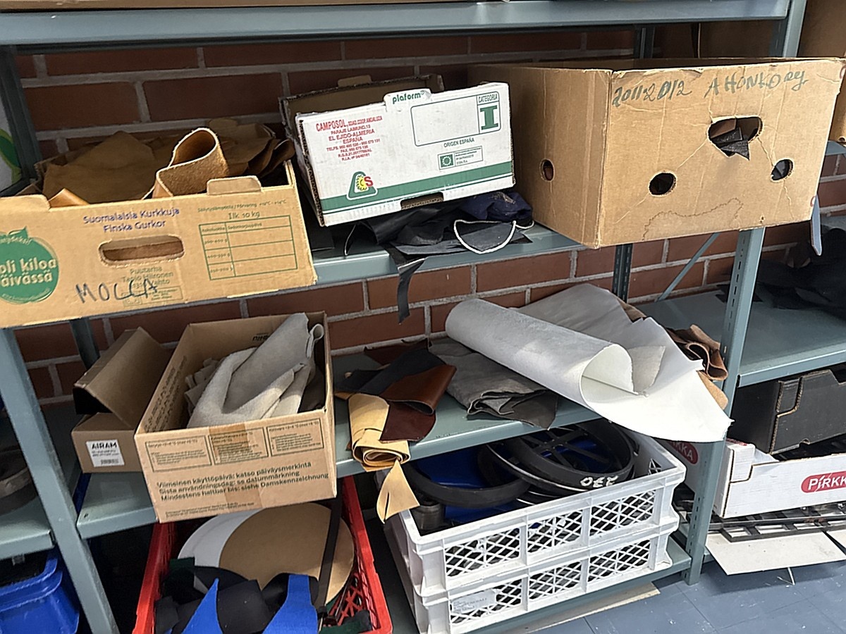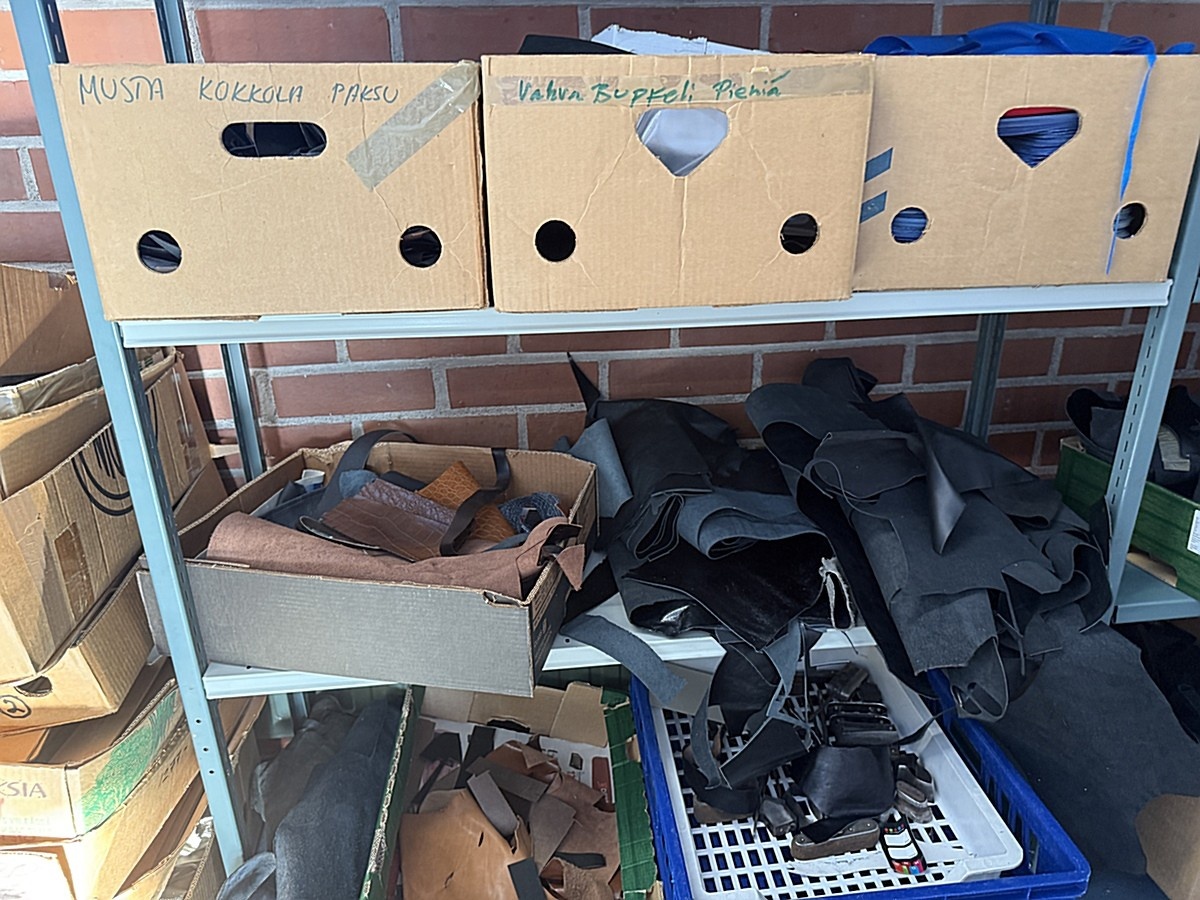 Myyntikohteet » 3. Honko Oy:n konkurssipesä (0974059-0), SASTAMALA, 17.02.2026 » 55. Nahanpalat ja laukkutarvikkeet (6 hyllyväliä)