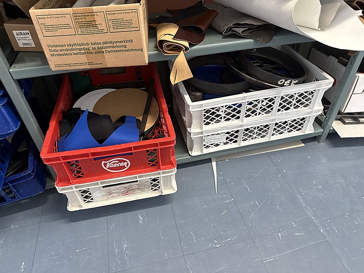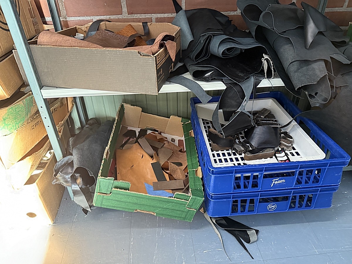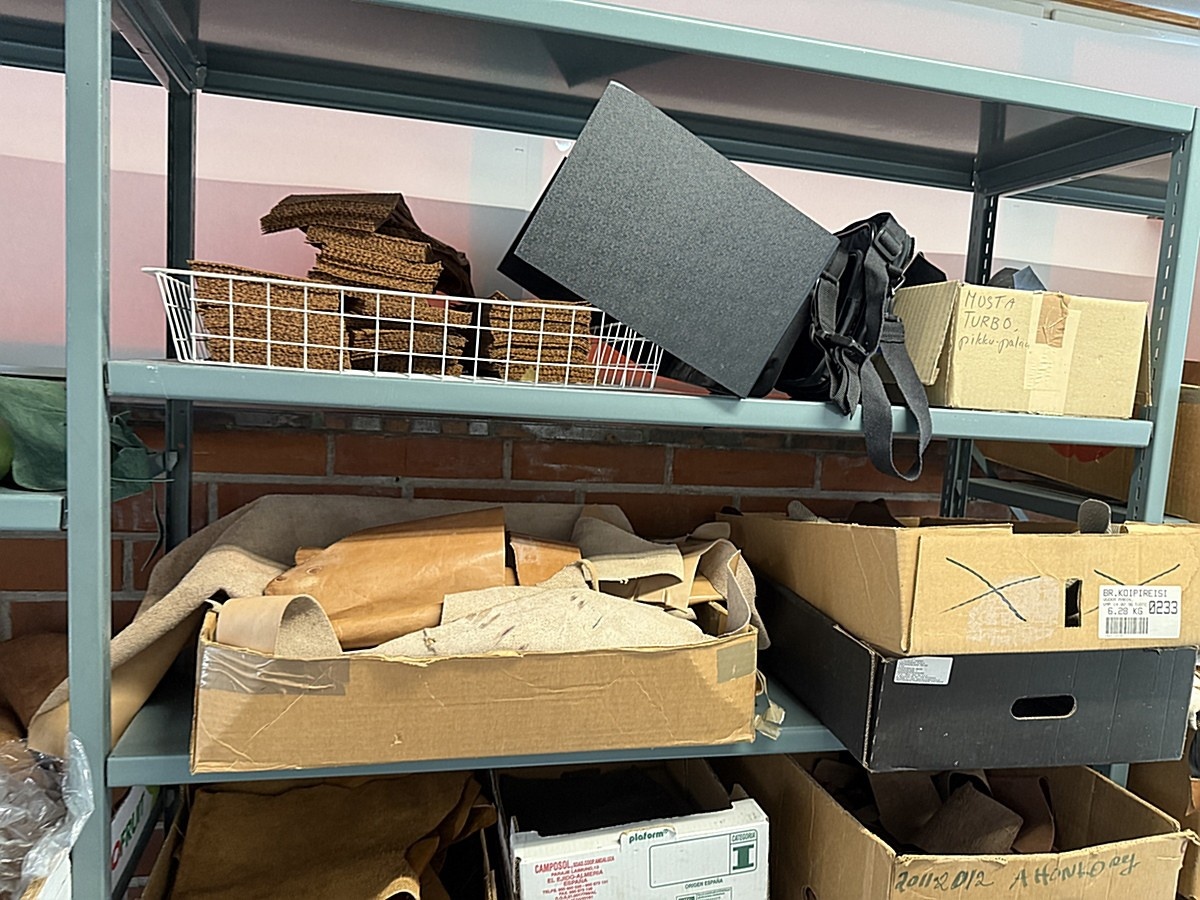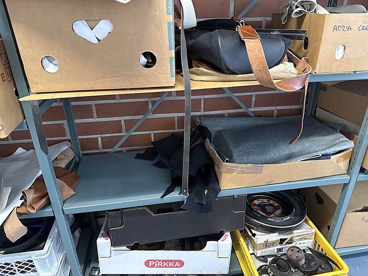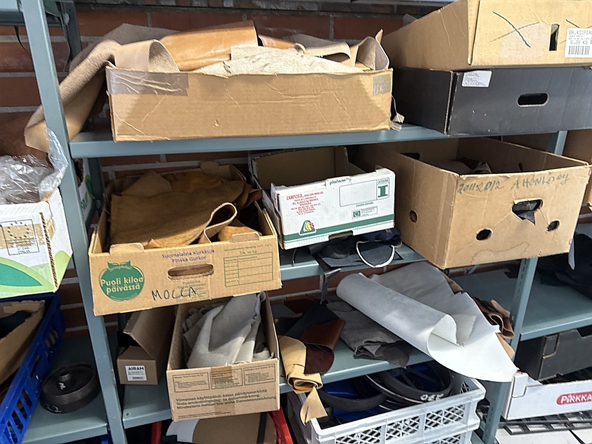 Myyntikohteet » 3. Honko Oy:n konkurssipesä (0974059-0), SASTAMALA, 17.02.2026 » 55. Nahanpalat ja laukkutarvikkeet (6 hyllyväliä)