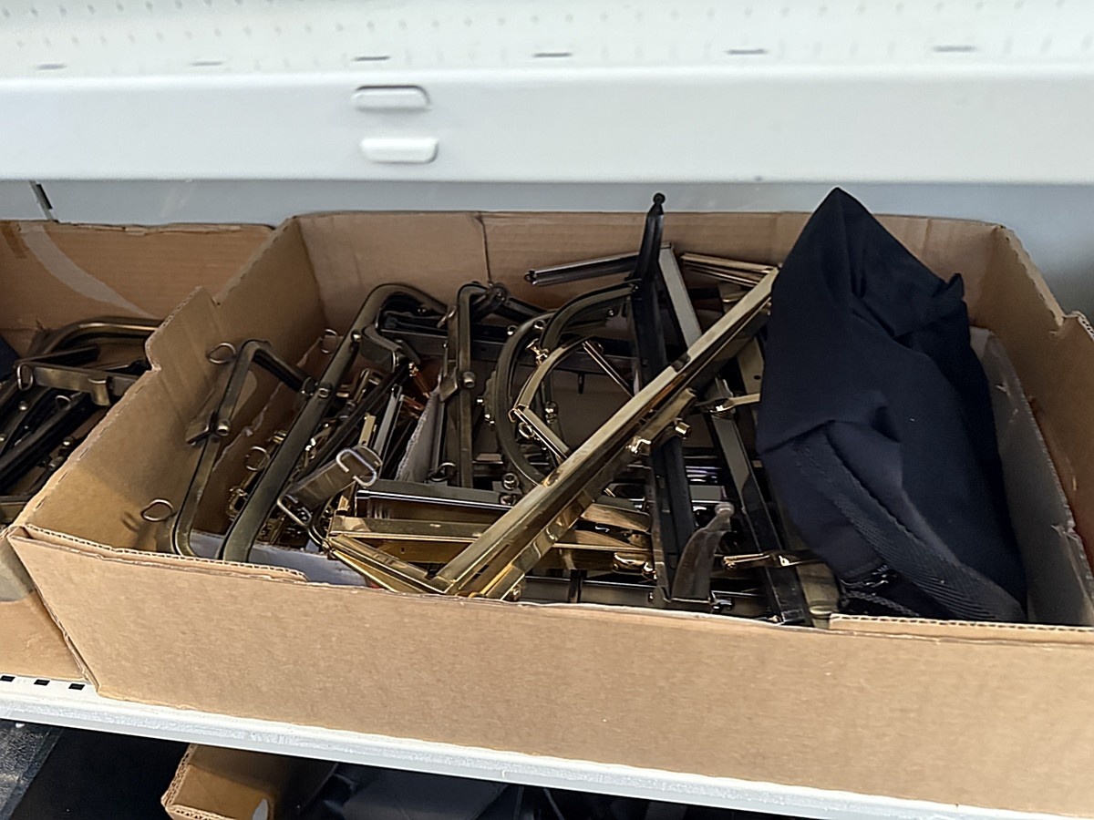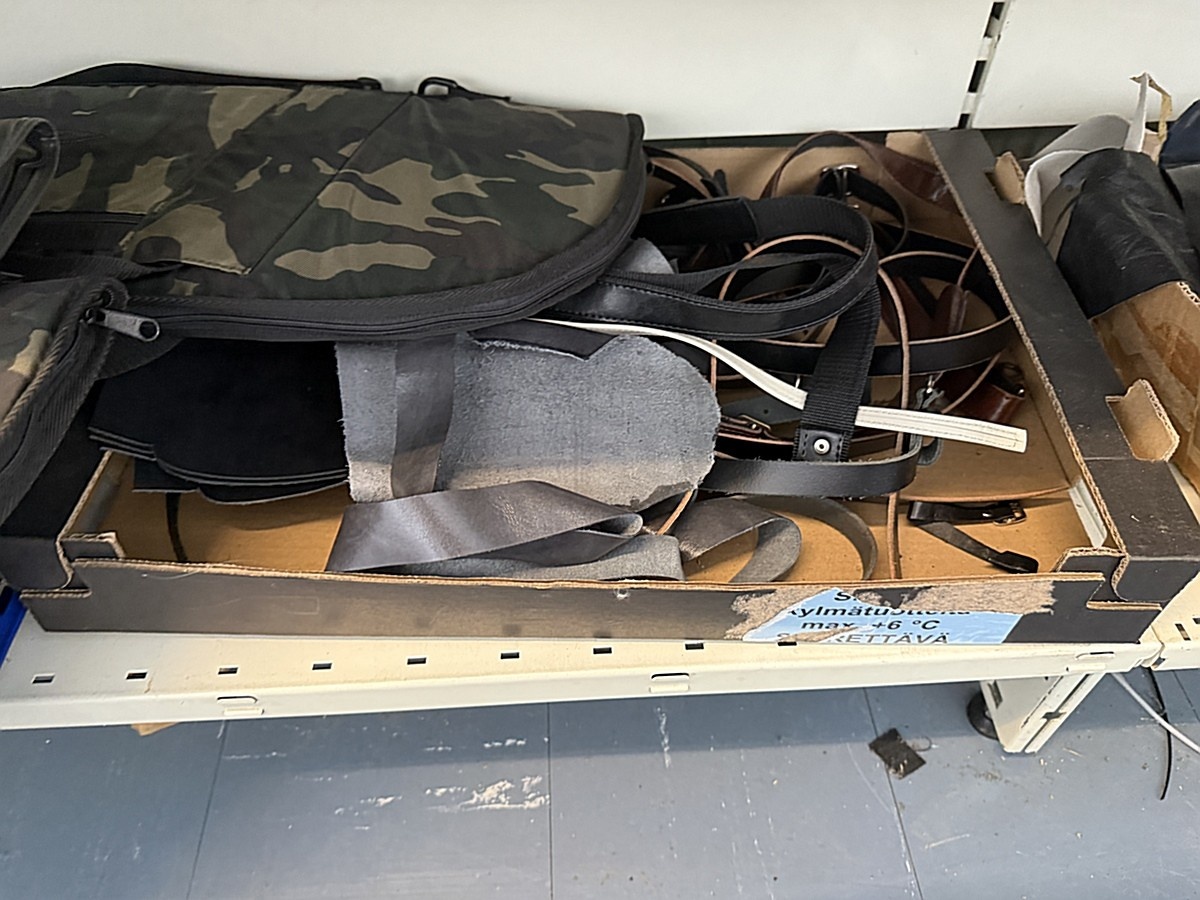 Myyntikohteet » 3. Honko Oy:n konkurssipesä (0974059-0), SASTAMALA, 17.02.2026 » 58. Laukkutarvikkeet, laukut ja nahat noin (15 laatikollista)