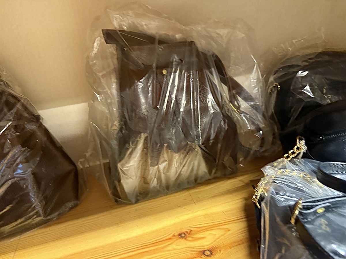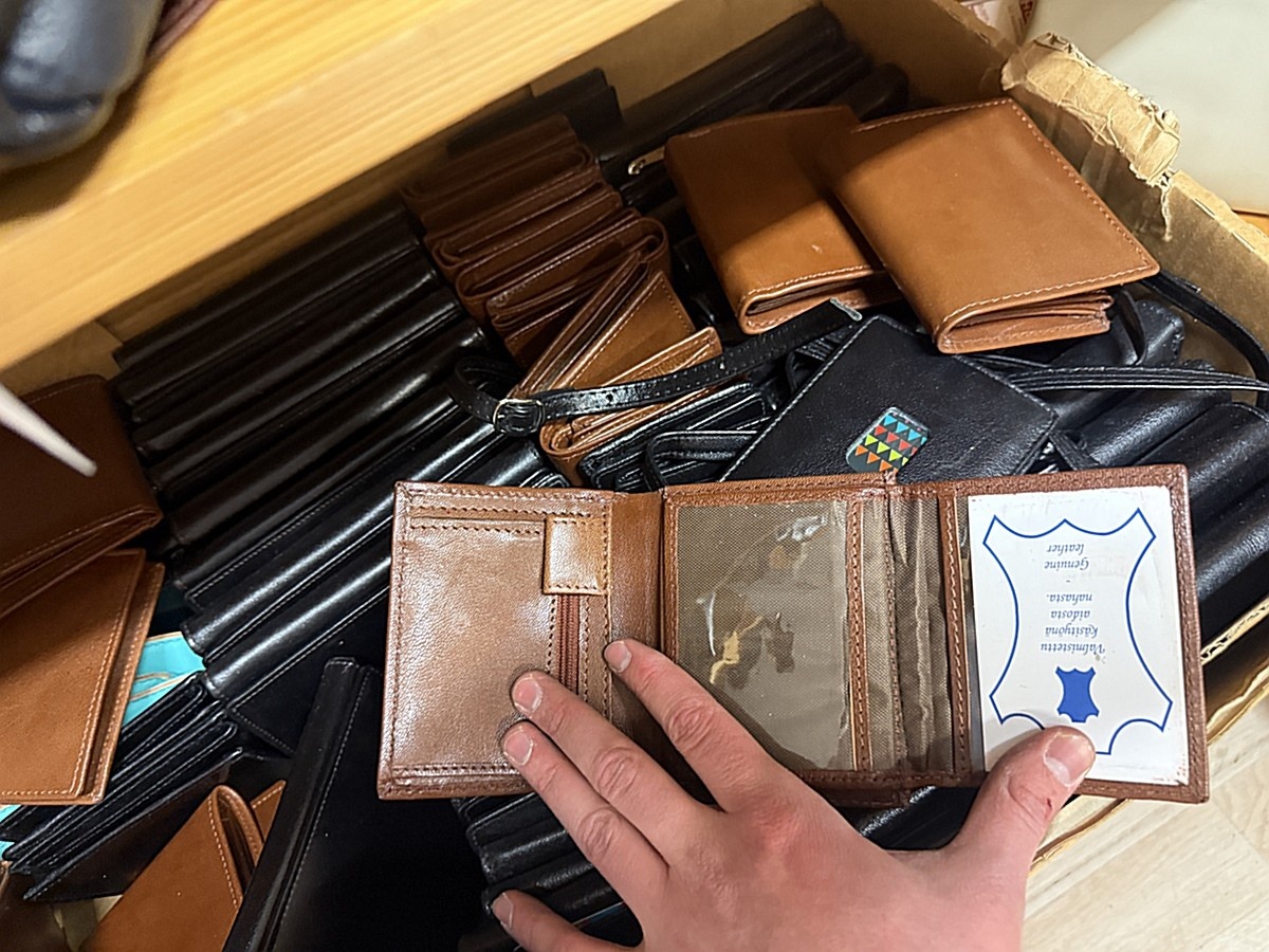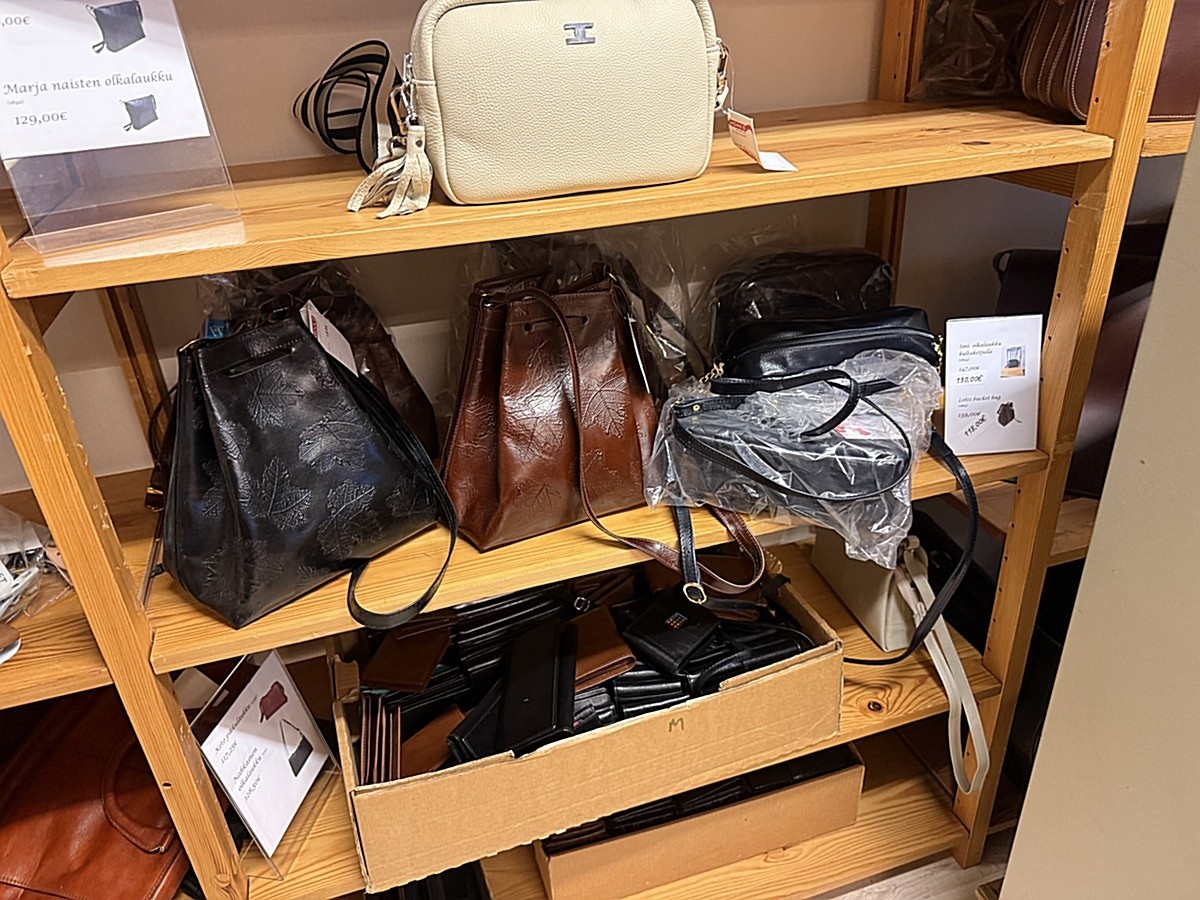 Laukkuja noin 16 kappaletta ja lompakoita noin 110 kappaletta.
