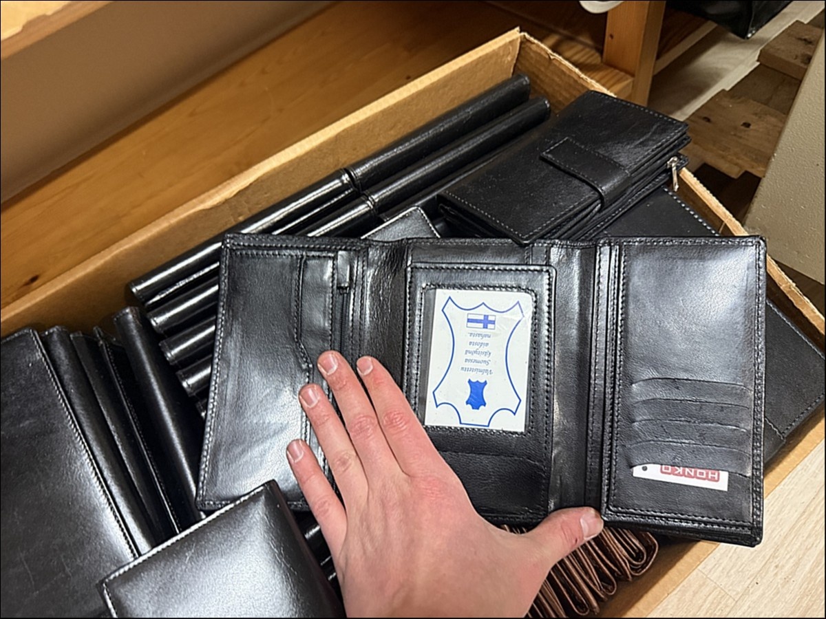 Myyntikohteet » 4. Honko Oy:n konkurssipesä (0974059-0), SASTAMALA, 17.02.2026 » 74. Nahkasalkut/laukut ja lompakot Honko noin (126 kappaletta) yksi hyllyväli