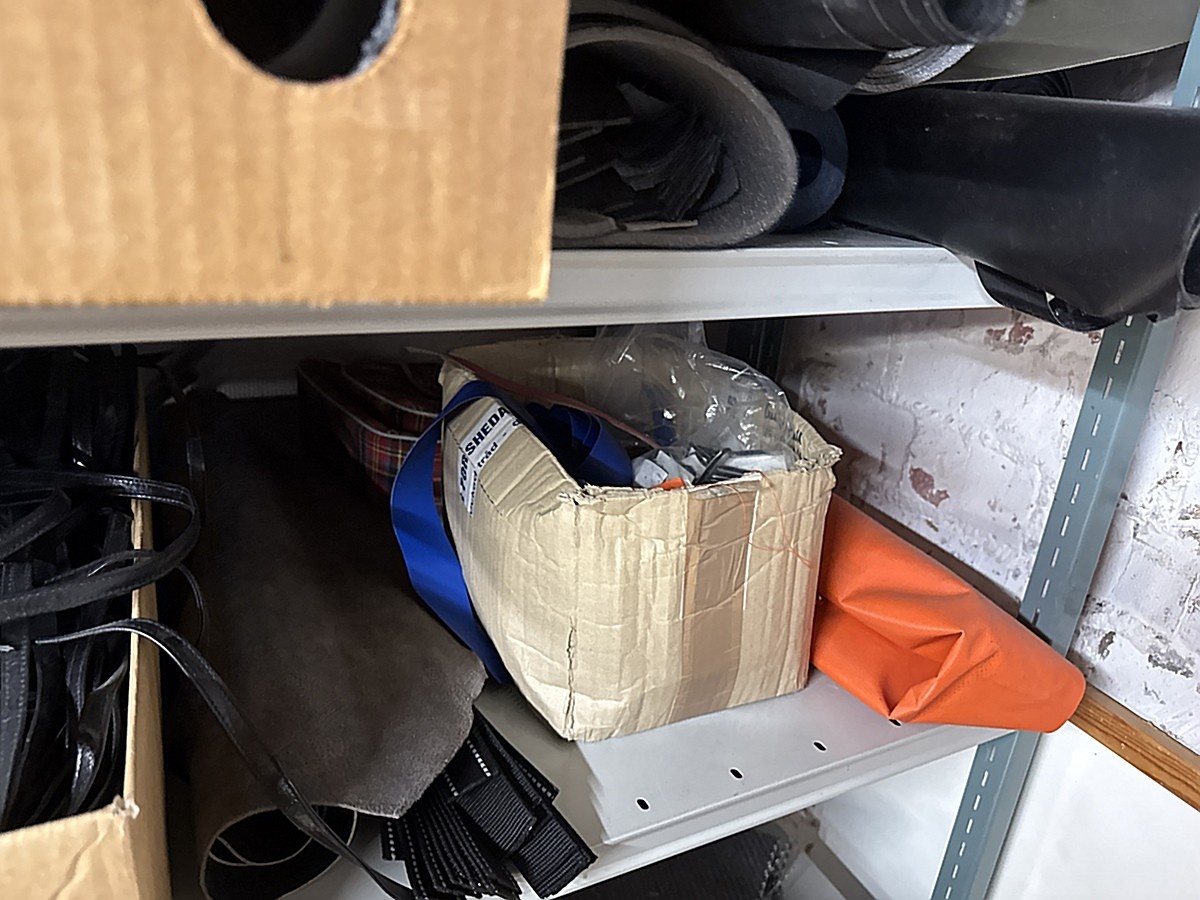 Myyntikohteet » 5. Honko Oy:n konkurssipesä (0974059-0), SASTAMALA, 17.02.2026 » 82. Nahkat, kangaspakat ja käsityötarvikkeita 6 hyllyväliä