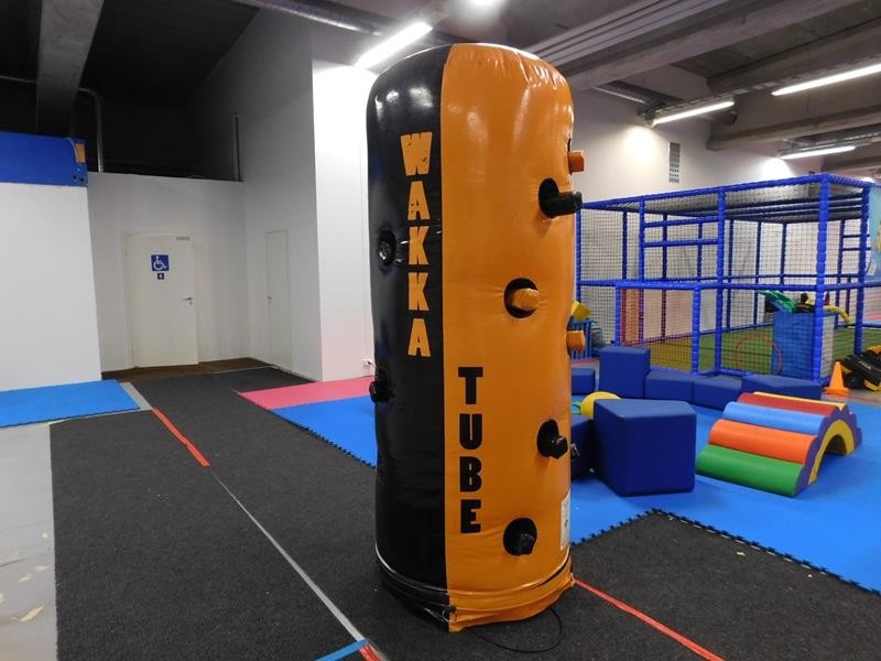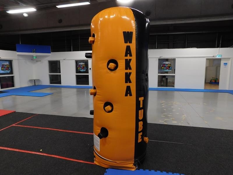 Ilmatäytteinen lyöntipeli Wakka-tube omalla puhaltimella.