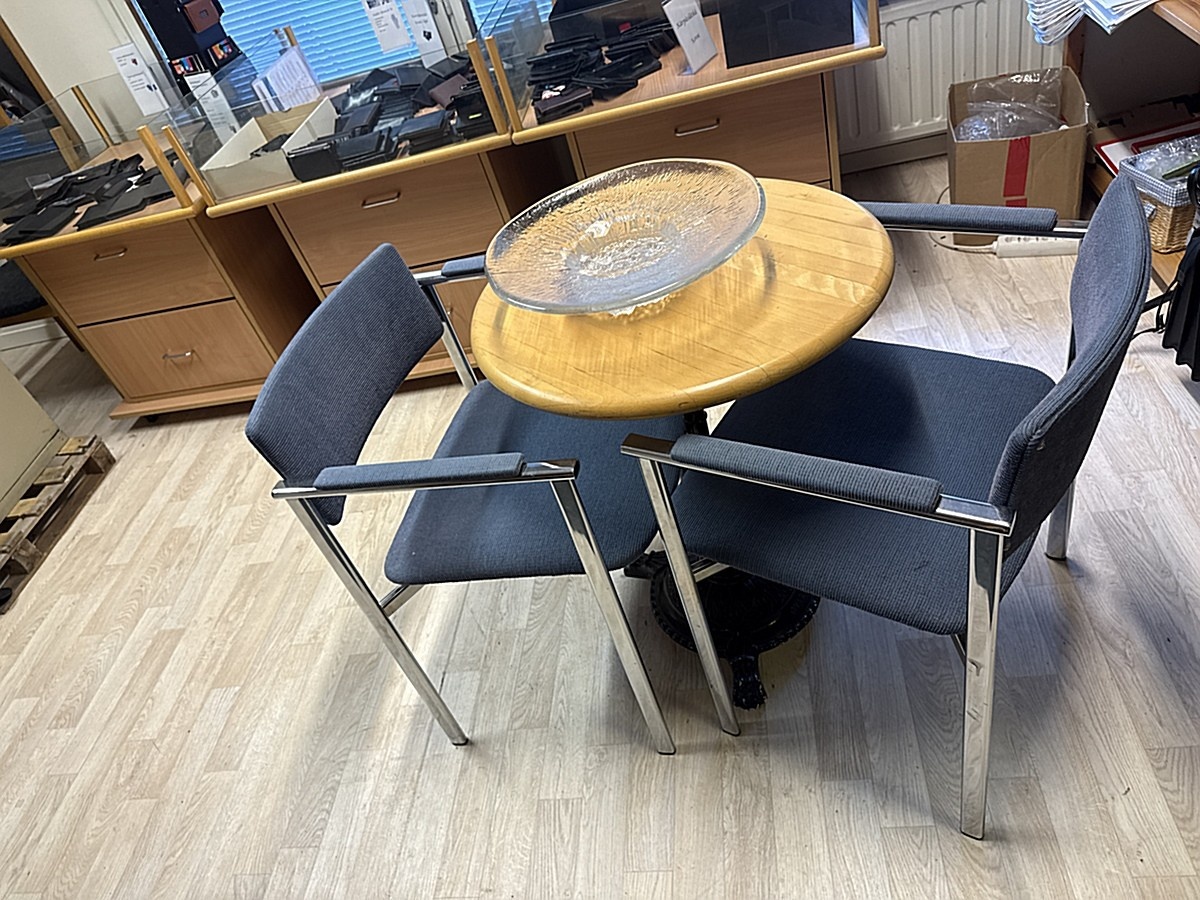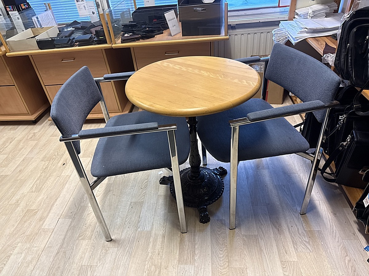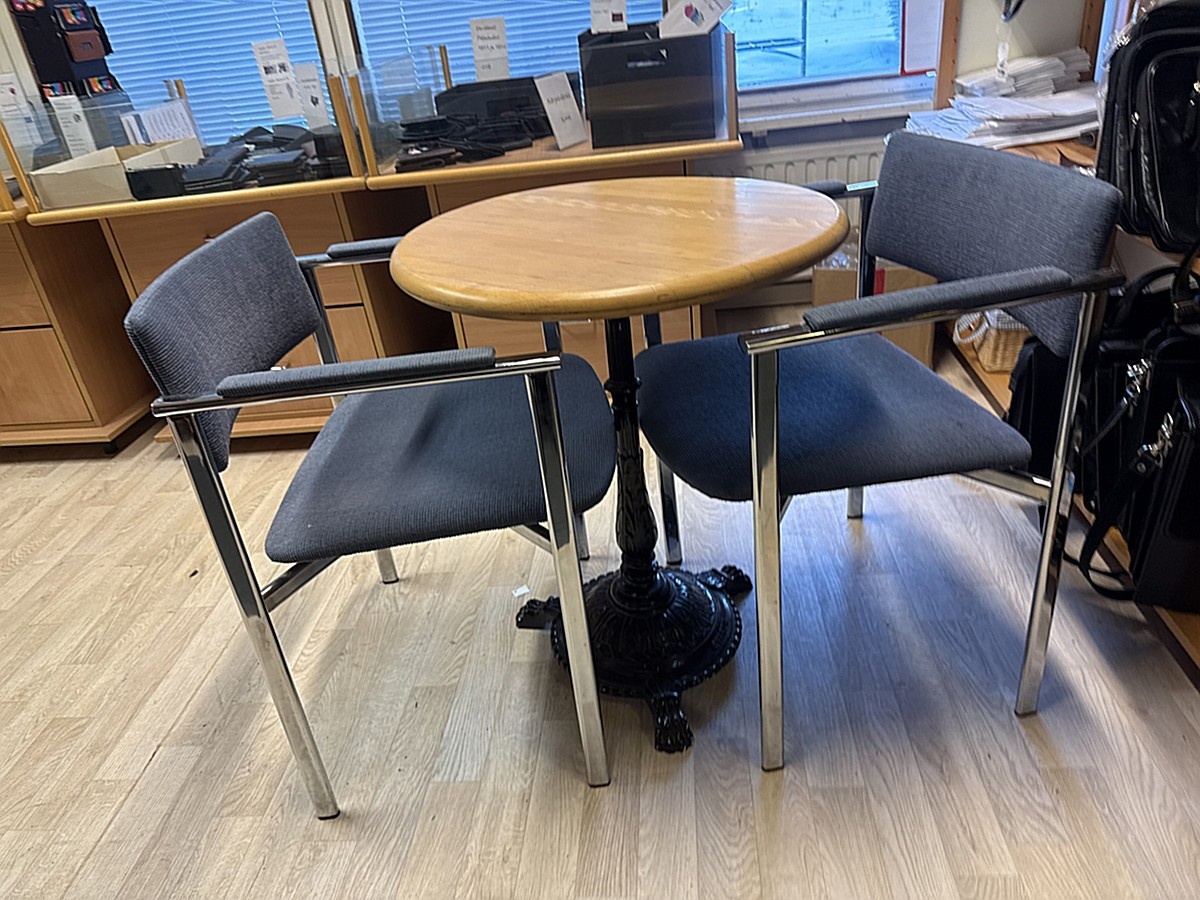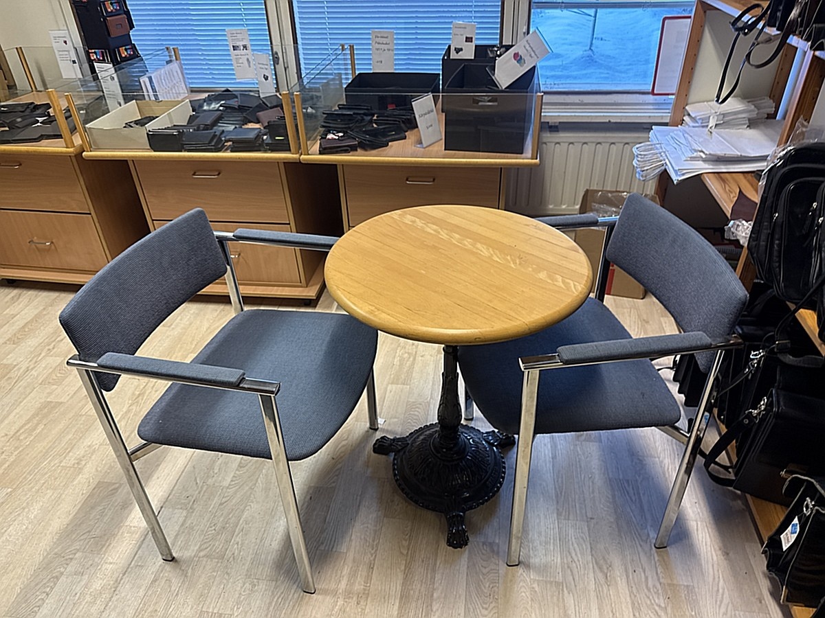 - pyöreä vintage pöytä ja Ilmari Tapiovaaran suunnittelemat tuolit 2 kappaletta.