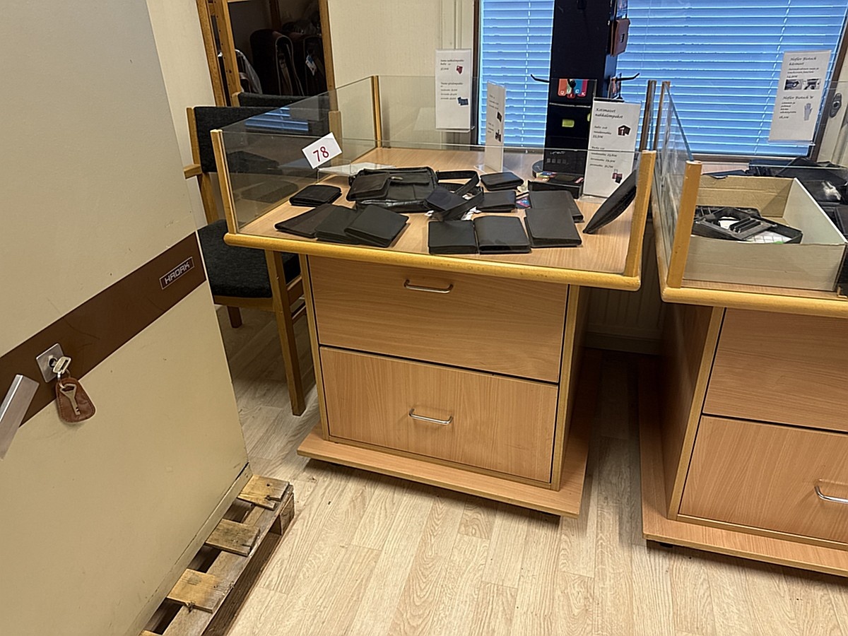 Myyntikohteet » 5. Honko Oy:n konkurssipesä (0974059-0), SASTAMALA, 17.02.2026 » 96.Vitriinikaapit 3 kappaletta, pöytä ja tuolit