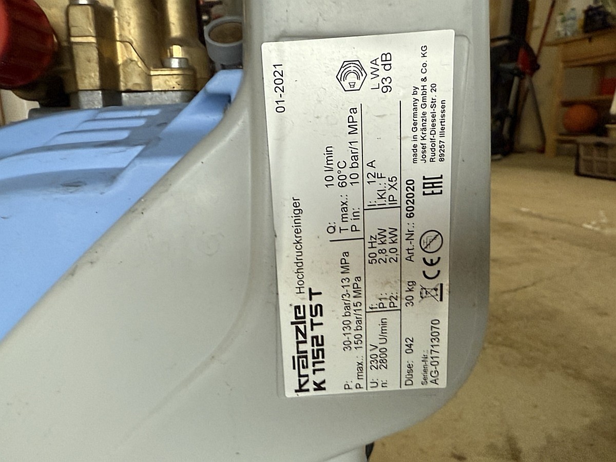 Myyntikohteet » 2. Gernel Oy:n konkurssipesä (2286718-2), SASTAMALA, 19.02.2026 » 30. Painepesuri Kränzle K 1152 TST