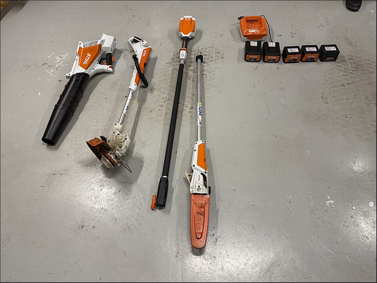 Myyntikohteet » 2. Gernel Oy:n konkurssipesä (2286718-2), SASTAMALA, 19.02.2026 » 35. Akkutyökalut STHIL (4 kappaletta ja akut 5 kappaletta + laturi)