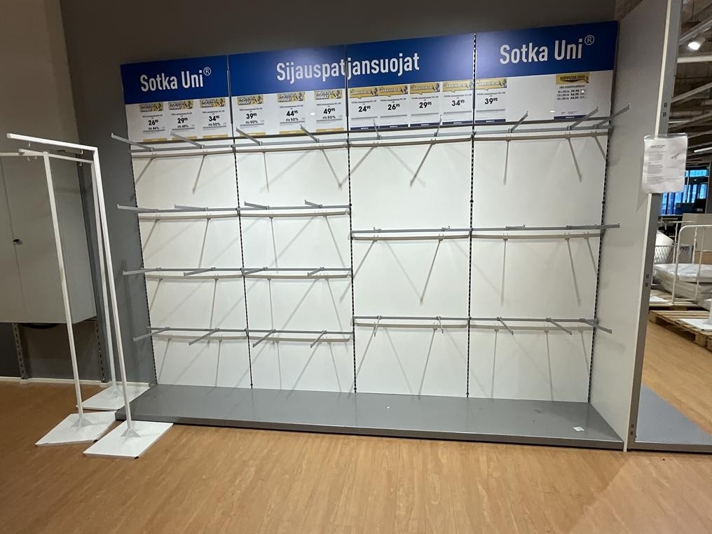 Myymälähyllyt yhteensä 14-hyllyvälikköä (ei tasoja)