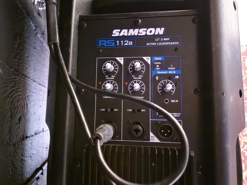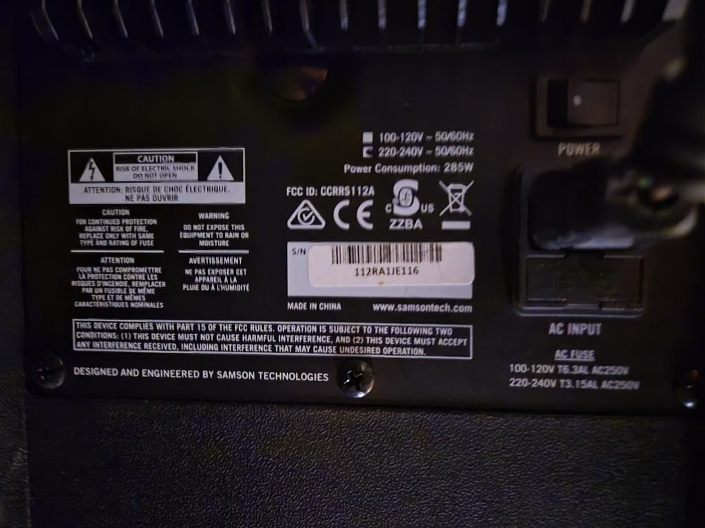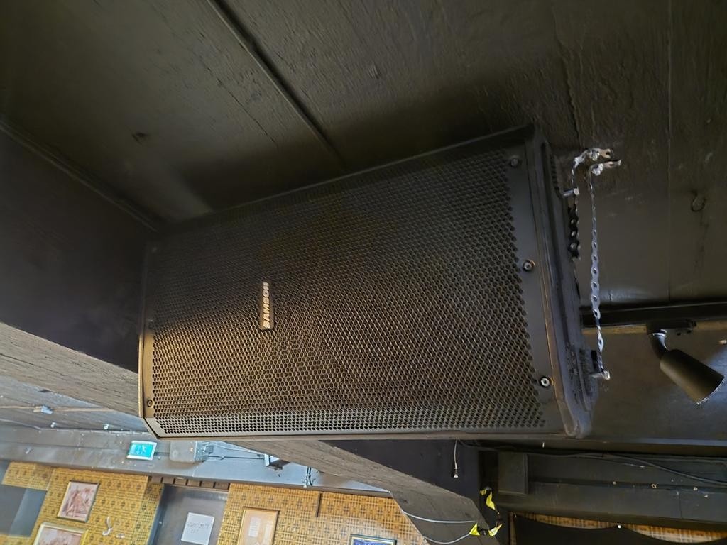 Myyntikohteet » Bere Oy:n konkurssipesä (3347351-7), SEINÄJOKI, 19.02.2026 » 02. Samson kaiutin 2 kpl + lattiateline 2 kpl, Molton-kangas, vahvistin ym.