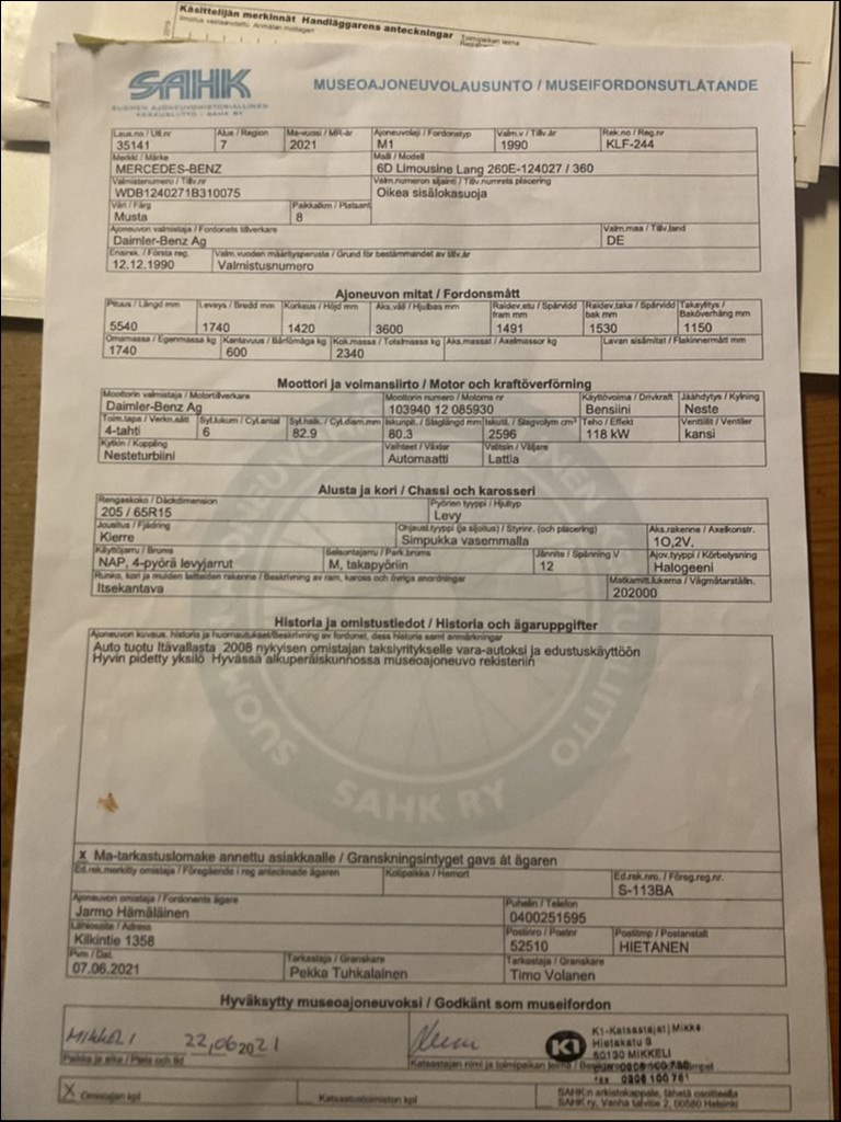 Myyntikohteet » Hämäläisen kuolinpesä, HIRVENSALMI, 20.02.2026 » 01. Henkilöauto Mercedes-Benz 260E, vm.1990