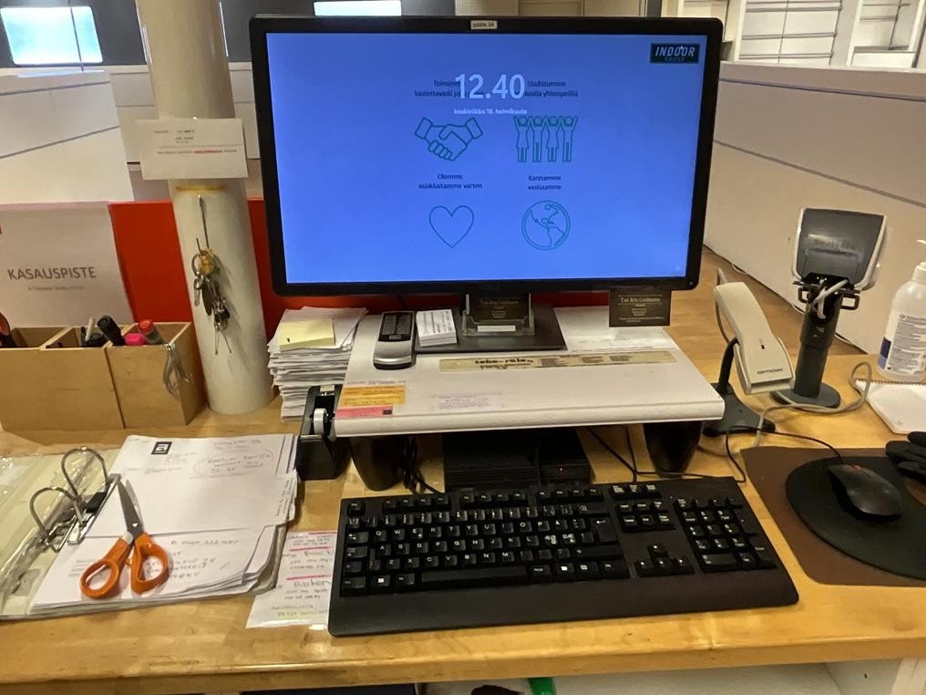 Myyntikohteet » 2. Indoor Group Oy:n konkurssipesä, TURKU (1512332-9) - HUOM! PÄÄTTYY TIISTAINA (24.2), 20.02.2026 » 62. Myymälän infopiste (2-osainen), tulostin HP, näyttö + näppäimistö