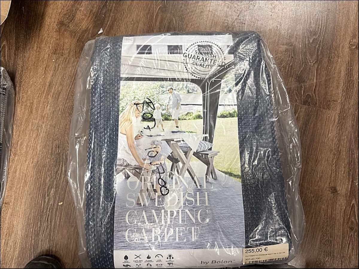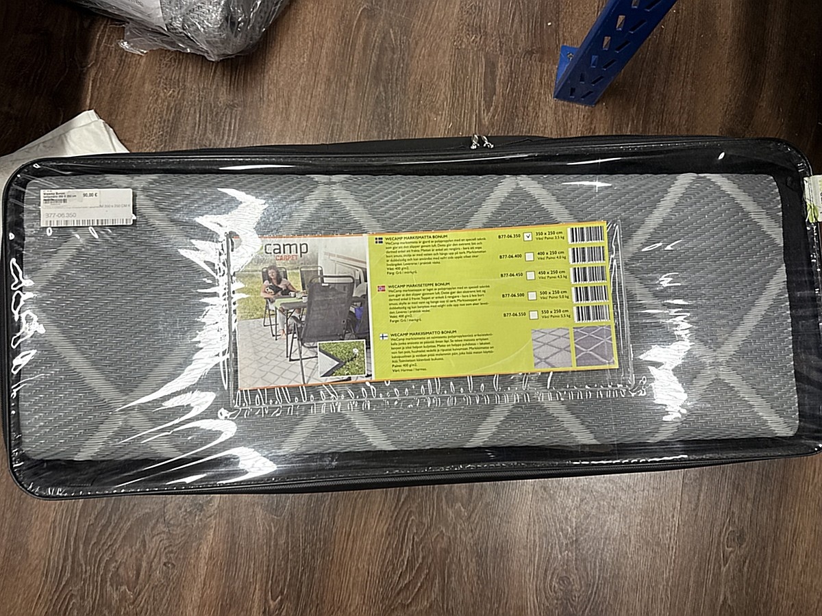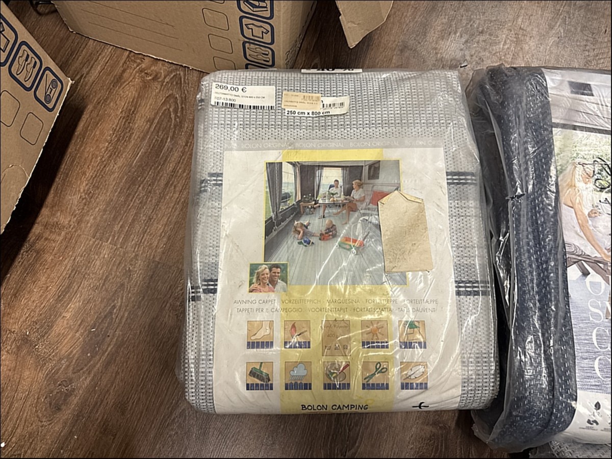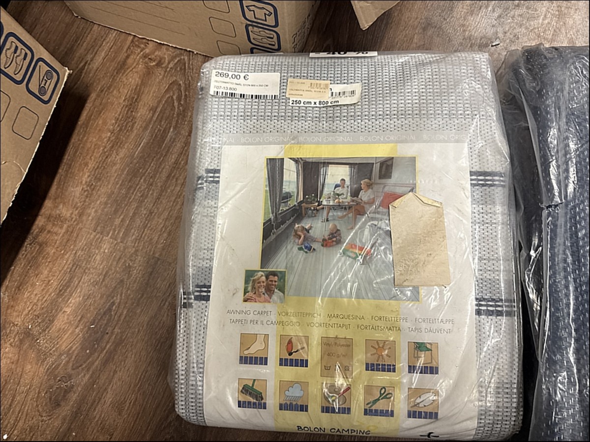 Myyntikohteet » 2. Karavaanitaivas Oy:n konkurssipesä (3341115-6). LAHTI, 27.02.2026 » 32. Telttamatot (6 kappaletta) myrskyliinat (7 kappaletta) ja rengaskiilat (3 kappaletta)