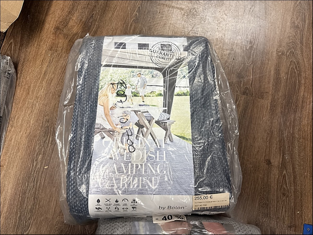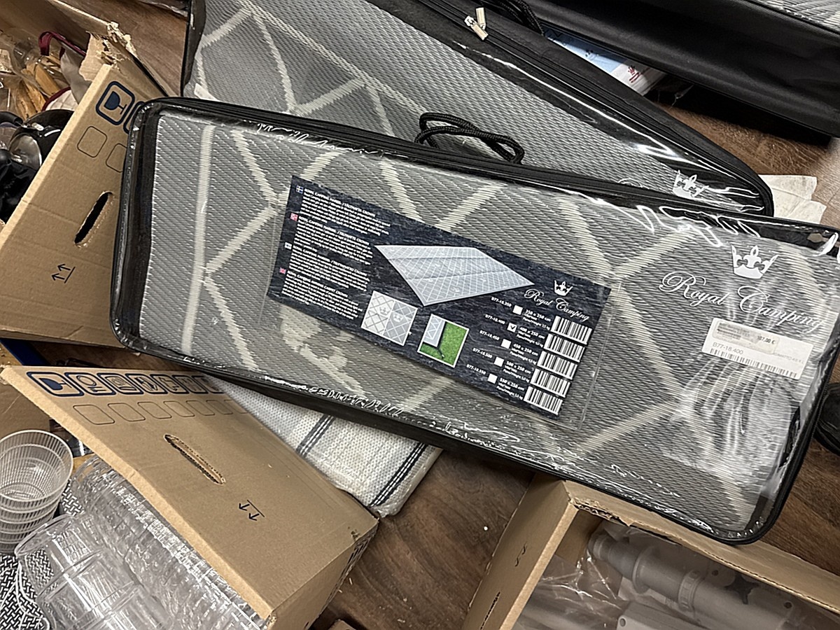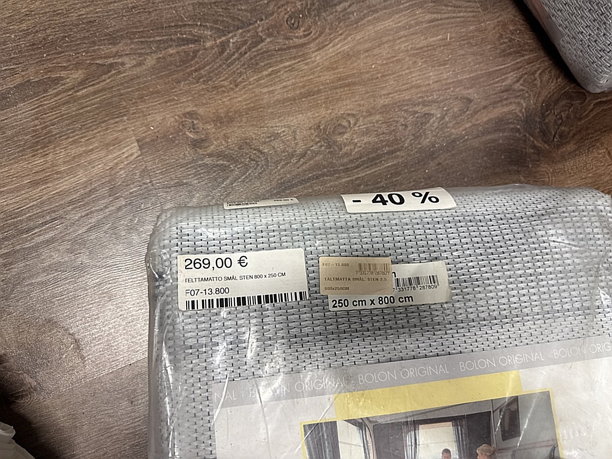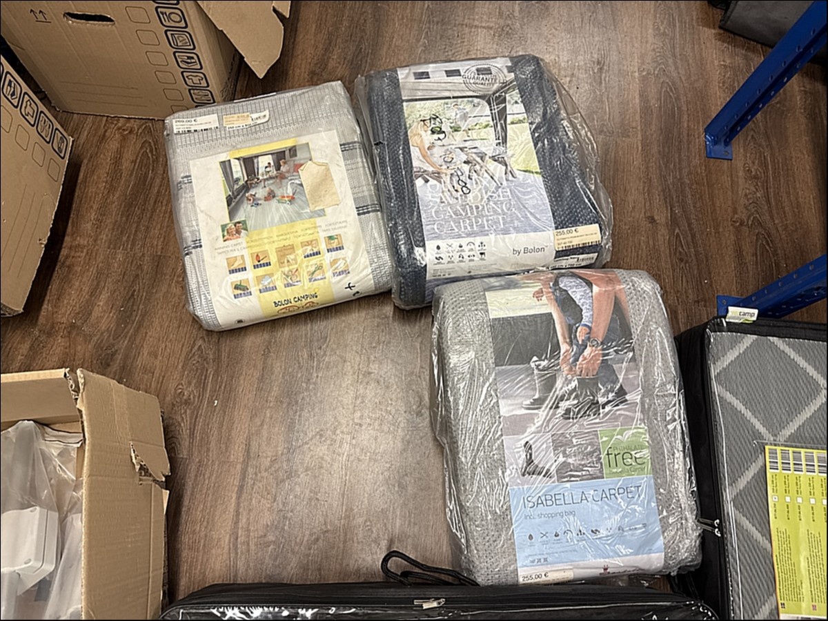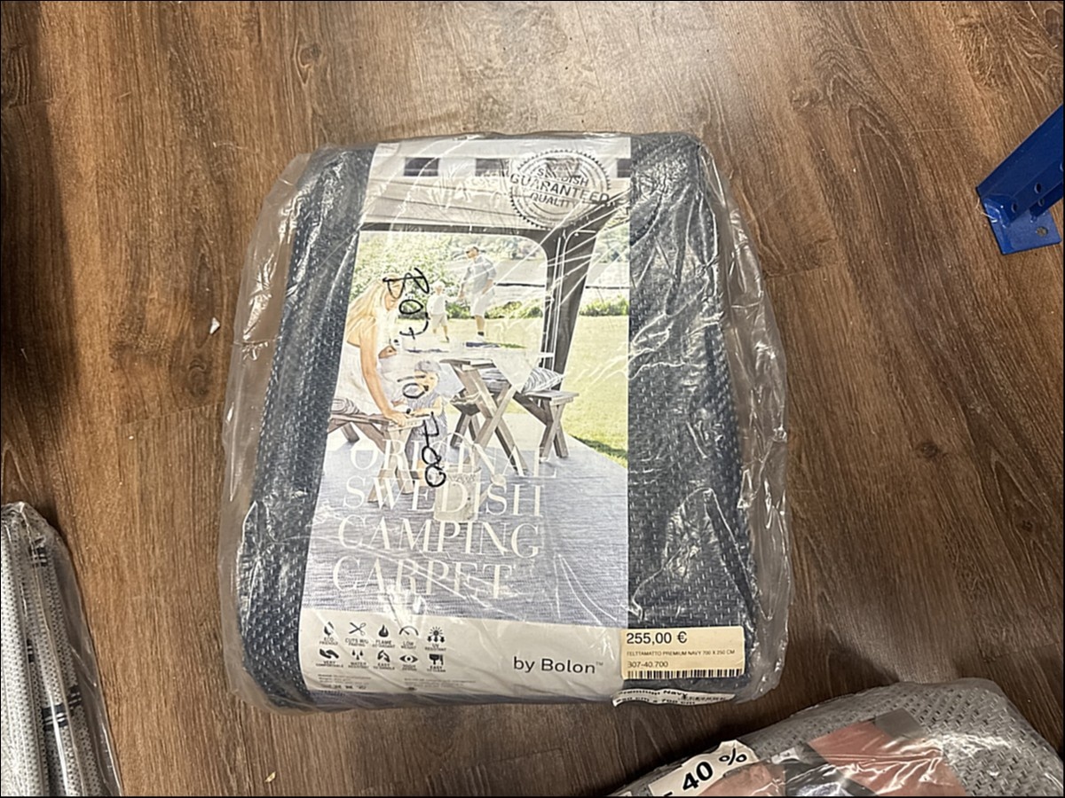 Myyntikohteet » 2. Karavaanitaivas Oy:n konkurssipesä (3341115-6). LAHTI, 27.02.2026 » 32. Telttamatot (6 kappaletta) myrskyliinat (7 kappaletta) ja rengaskiilat (3 kappaletta)