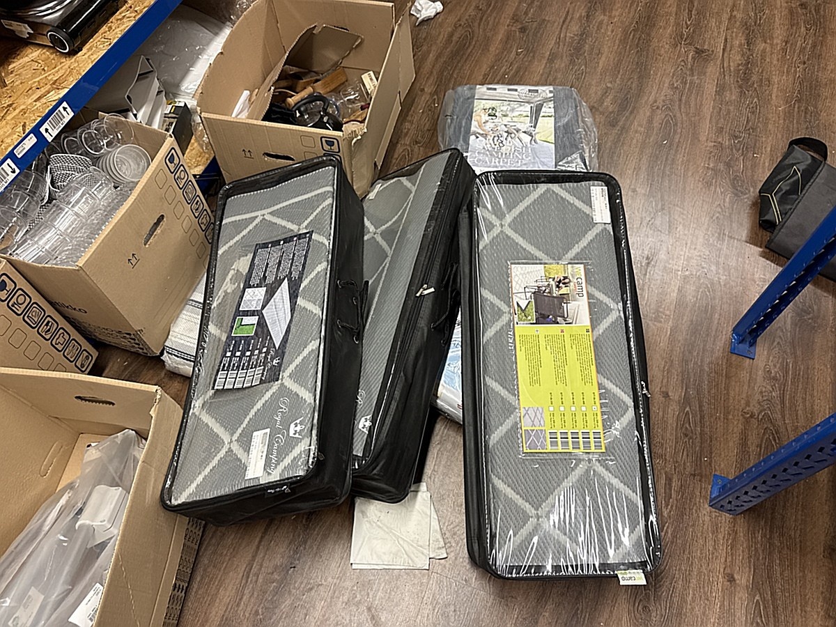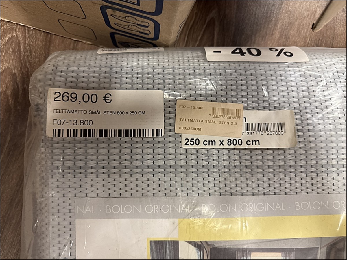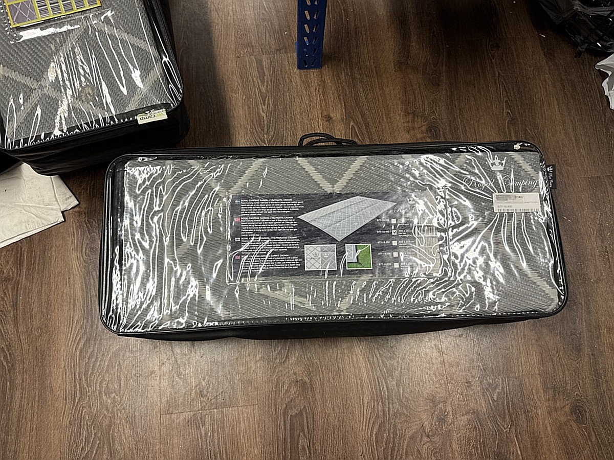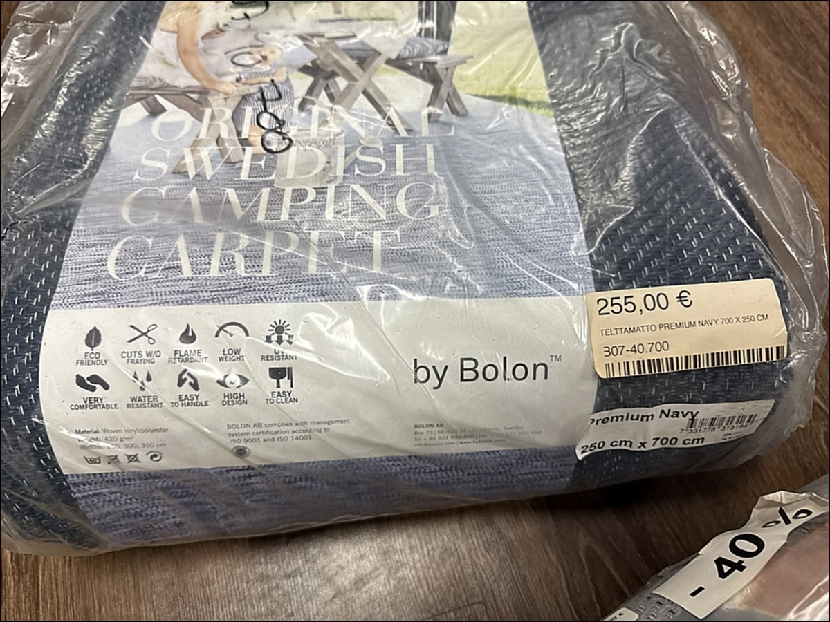 Myyntikohteet » 2. Karavaanitaivas Oy:n konkurssipesä (3341115-6). LAHTI, 27.02.2026 » 32. Telttamatot (6 kappaletta) myrskyliinat (7 kappaletta) ja rengaskiilat (3 kappaletta)