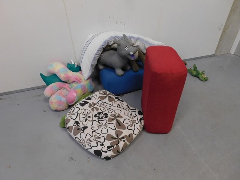 Mukaan reilusti kiipeilyseinien pehmusteita ym. (kaikki eivät näy kuvissa)