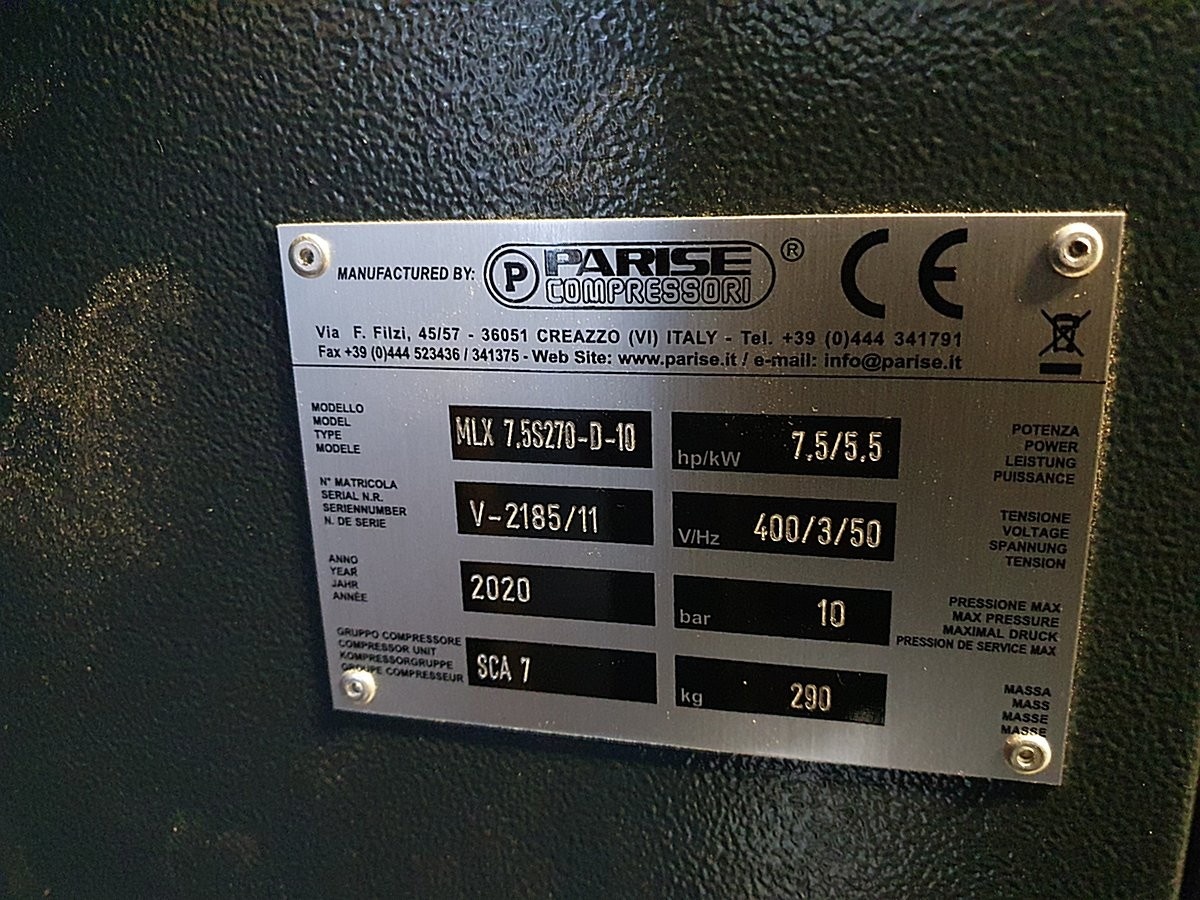 Myyntikohteet » 3. Karavaanitaivas Oy:n konkurssipesä (3341115-6). LAHTI, 27.02.2026 » 41. Ruuvikompressori Parise MLX 7,5 S270-D-10