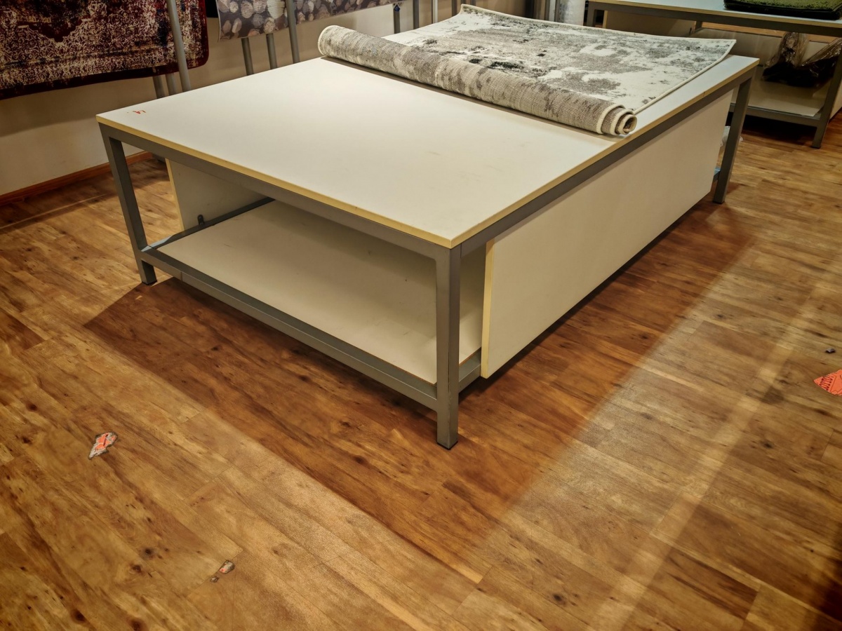 Myyntikohteet » 3. Indoor Group Oy:n konkurssipesä, KARJAA (1512332-9) , 26.02.2026 » 04. Keskilattiamyyntipöydät, valkoinen 2 kappaletta (140 x 200 cm)