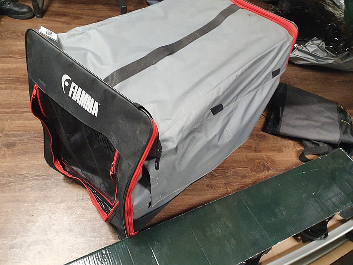 Myyntikohteet » 3. Karavaanitaivas Oy:n konkurssipesä (3341115-6). LAHTI, 27.02.2026 » 61. Alumiiniputkisto T@b 400L -matkailuvaunun etutelttaan, Thule Fatbike Rail kisko ja Fiamma Carry Dog -kokoontaitettava koirankoppi.