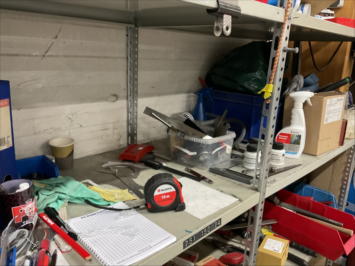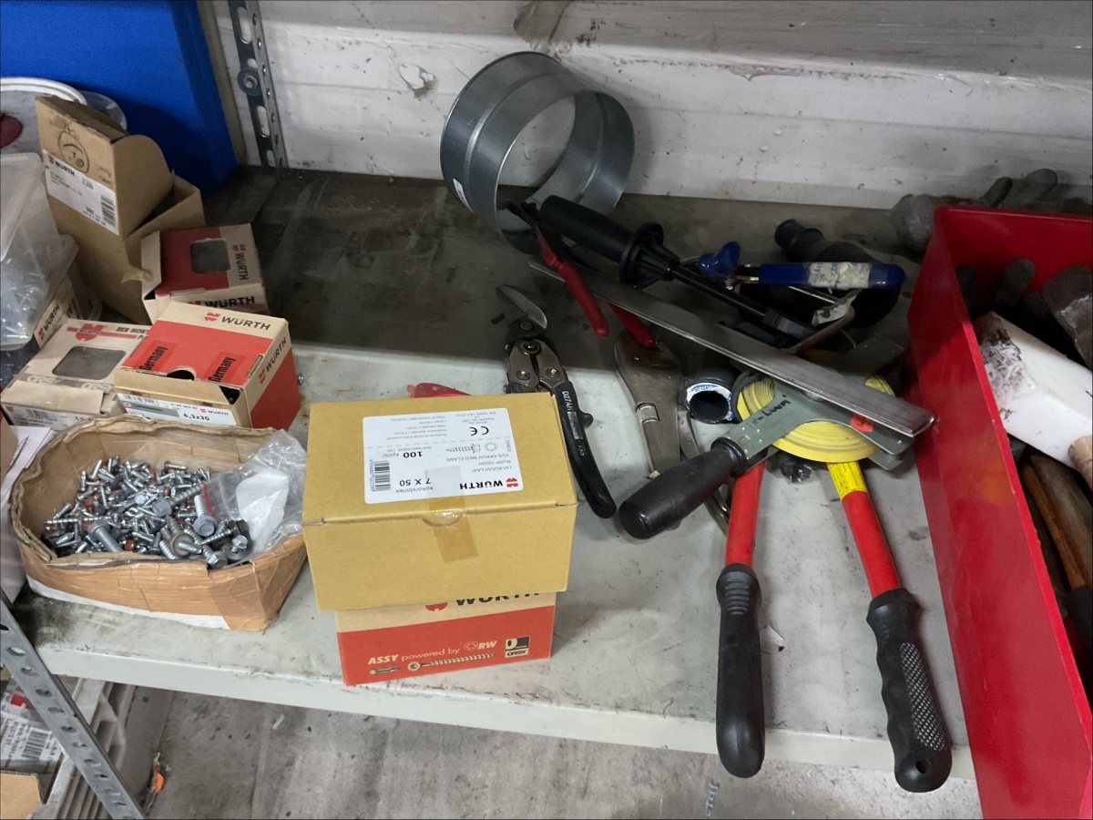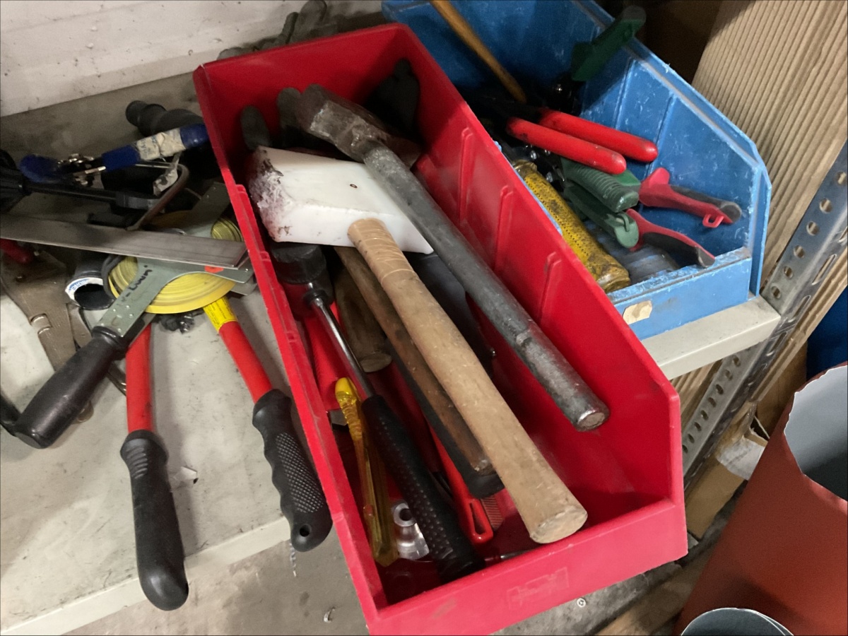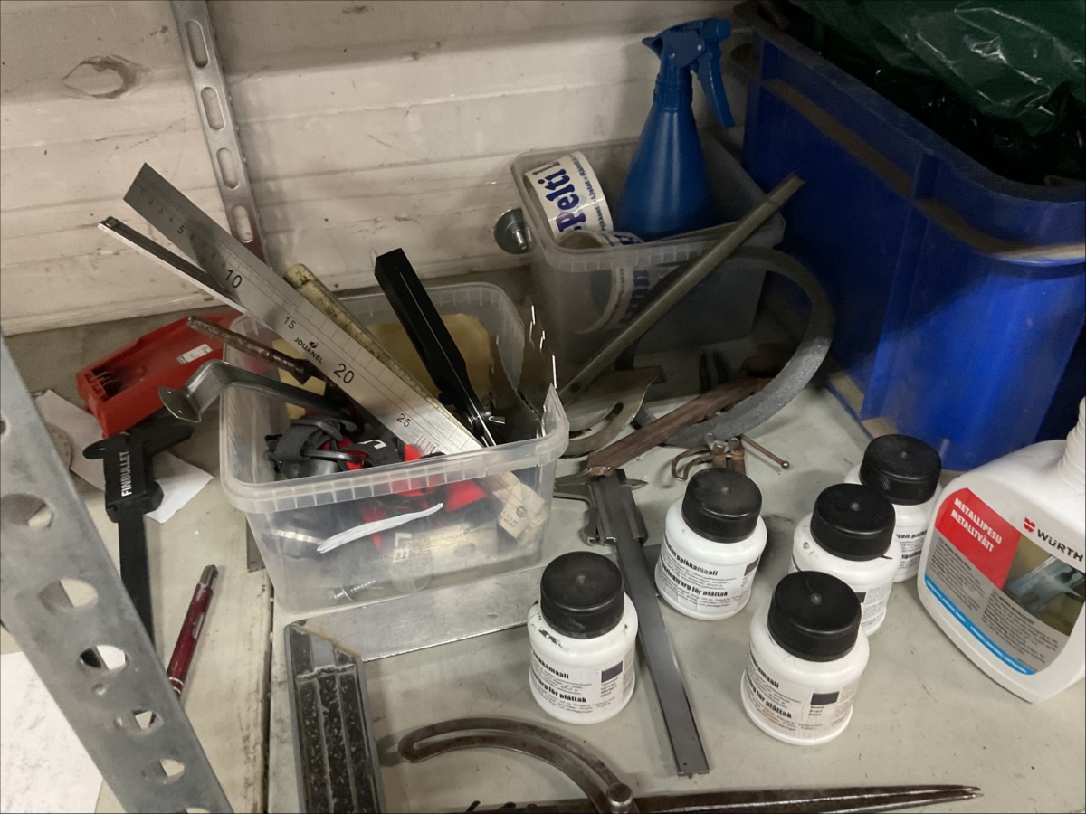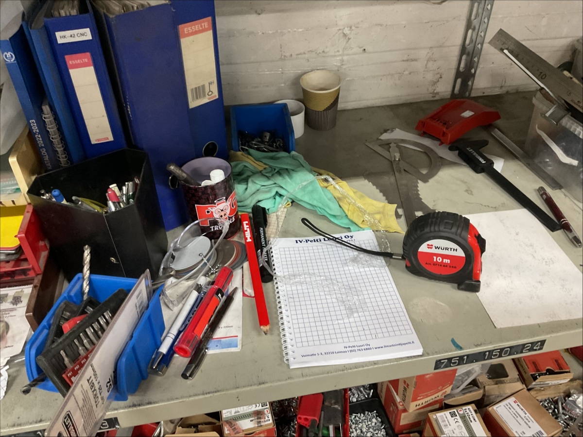 Myyntikohteet » 10. IV-Pelti Luuri Oy:n konkurssipesä, LOIMAA (1637489-1), 01.03.2026 » V154. Kahdessa hyllyvälissä olevat käsityökalut, kiinnitystarvikkeet ym.