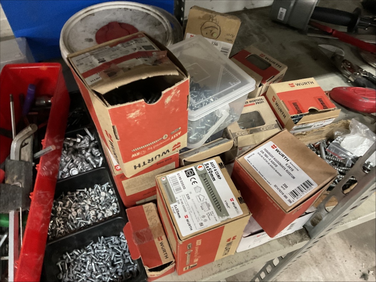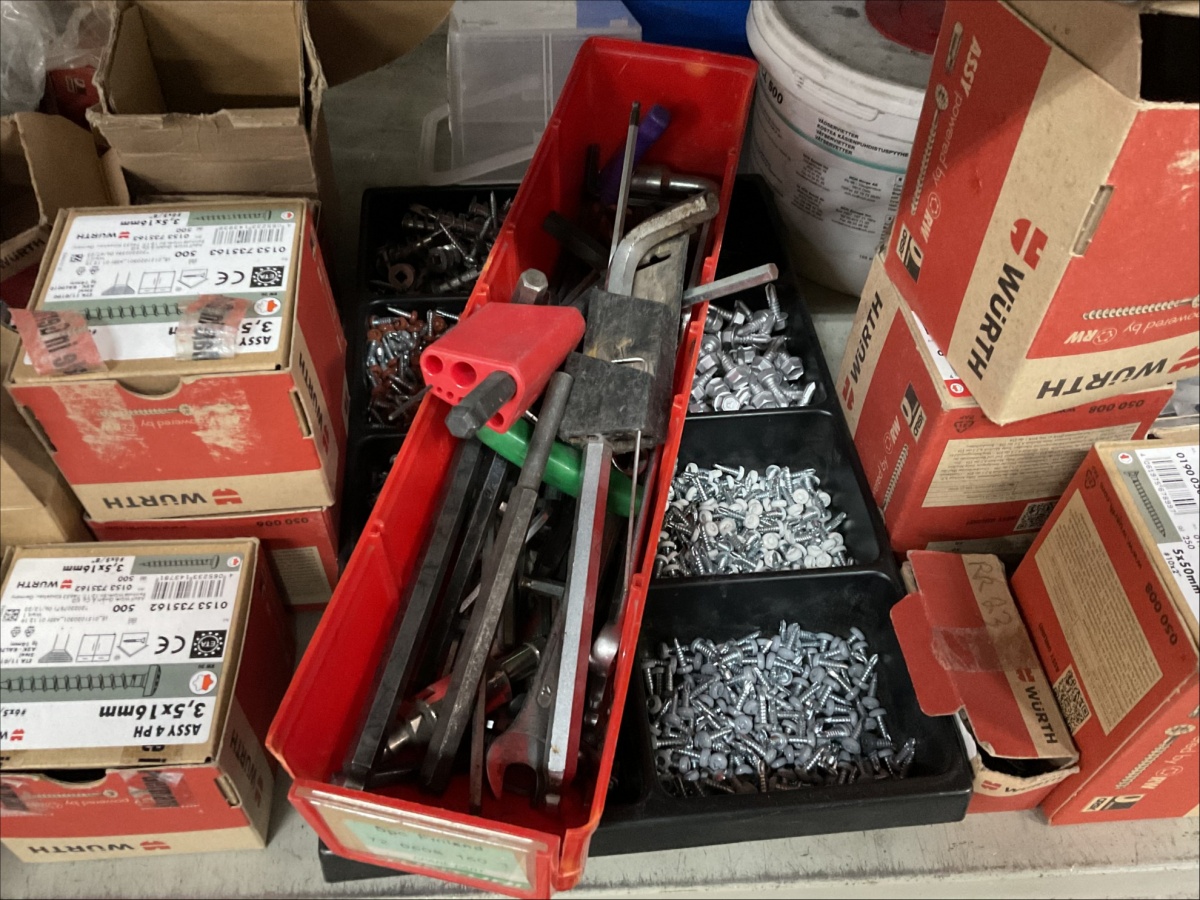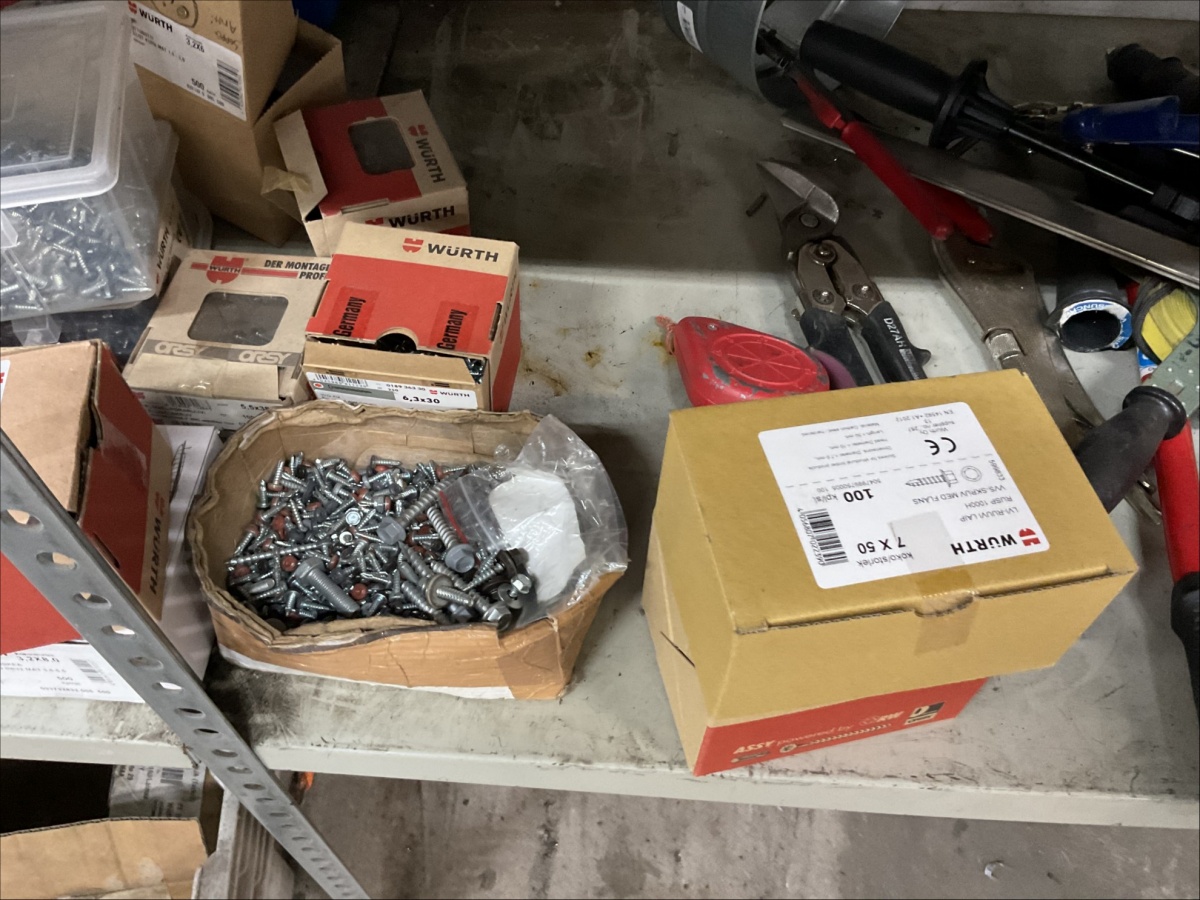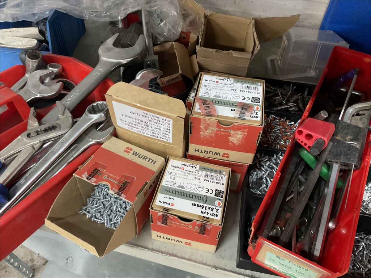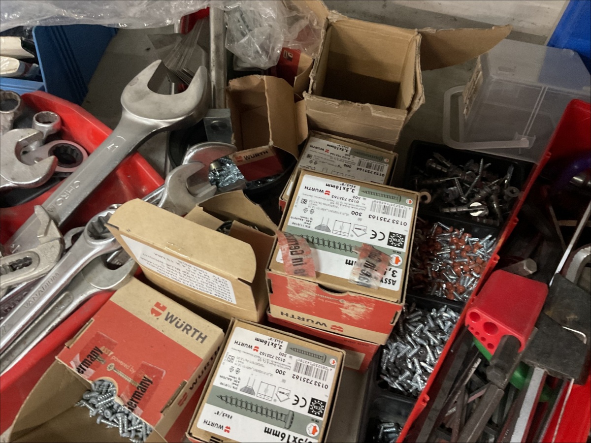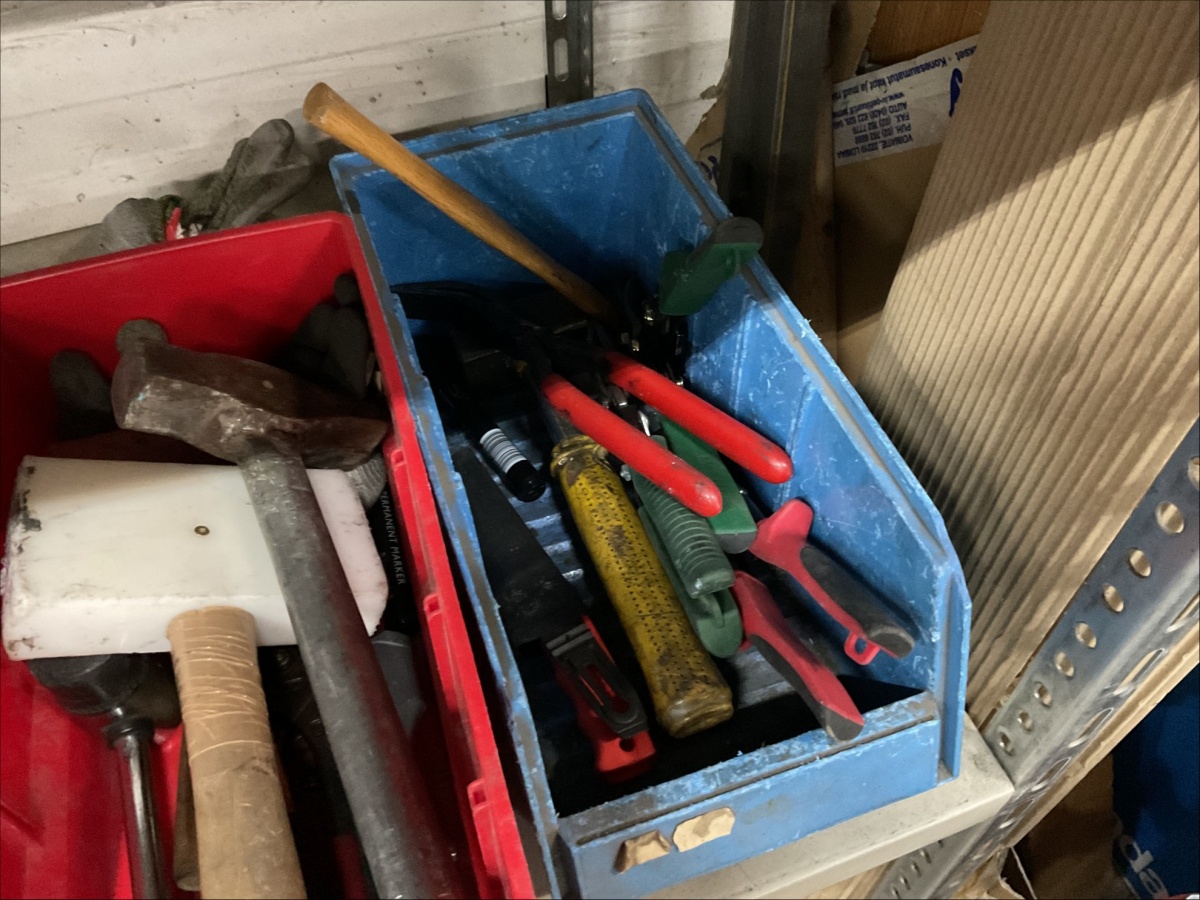 Myyntikohteet » 10. IV-Pelti Luuri Oy:n konkurssipesä, LOIMAA (1637489-1), 01.03.2026 » V154. Kahdessa hyllyvälissä olevat käsityökalut, kiinnitystarvikkeet ym.