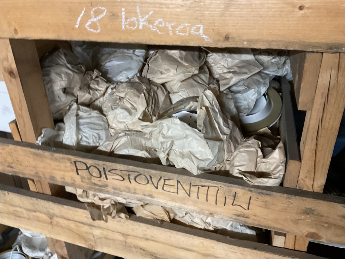 18 lokerossa olevat IV osat ja KVBv 200 poistoilmaventtiilit 58 kappaletta