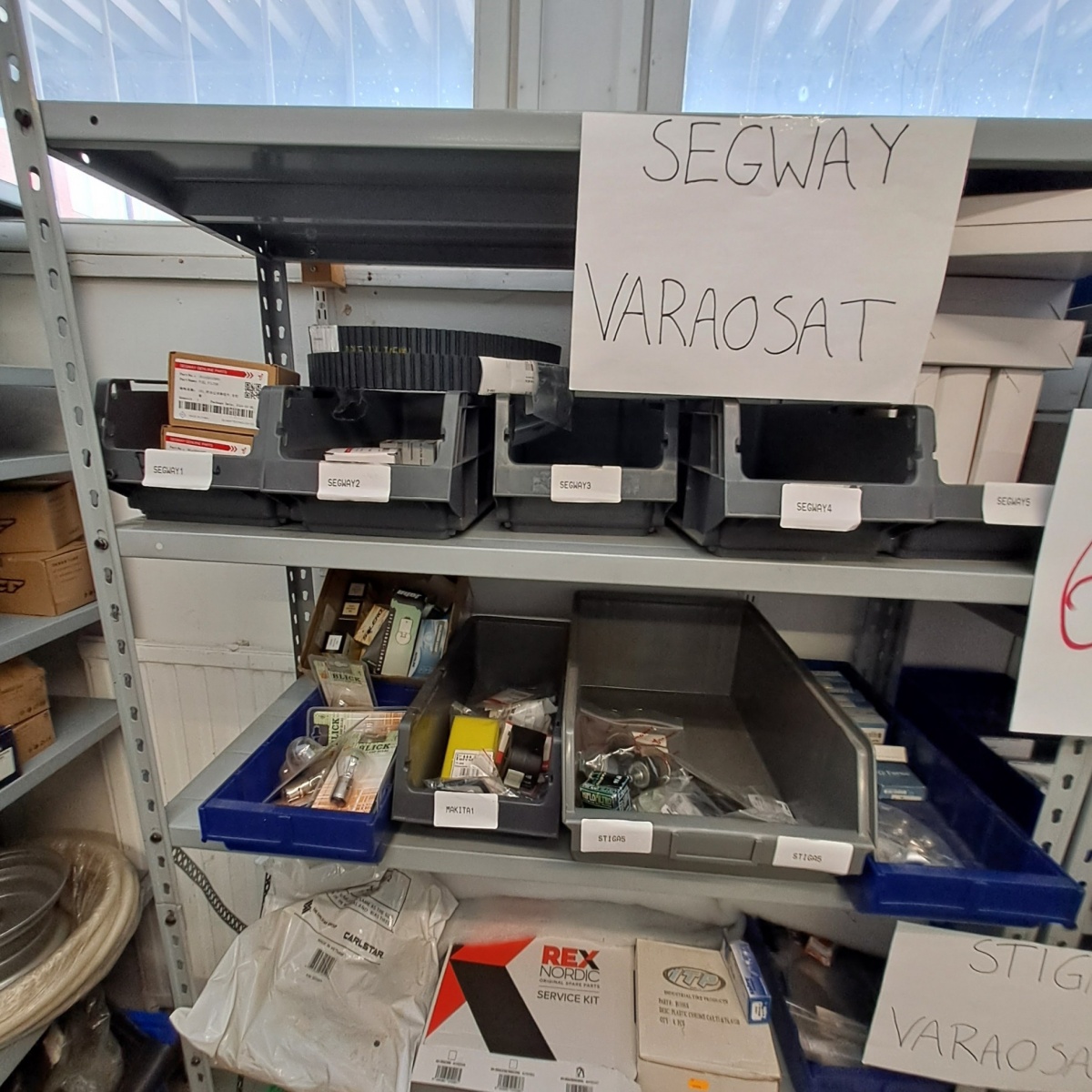 Segway varaosat, laakerit, Stiga varaosat ym. + hyllyt