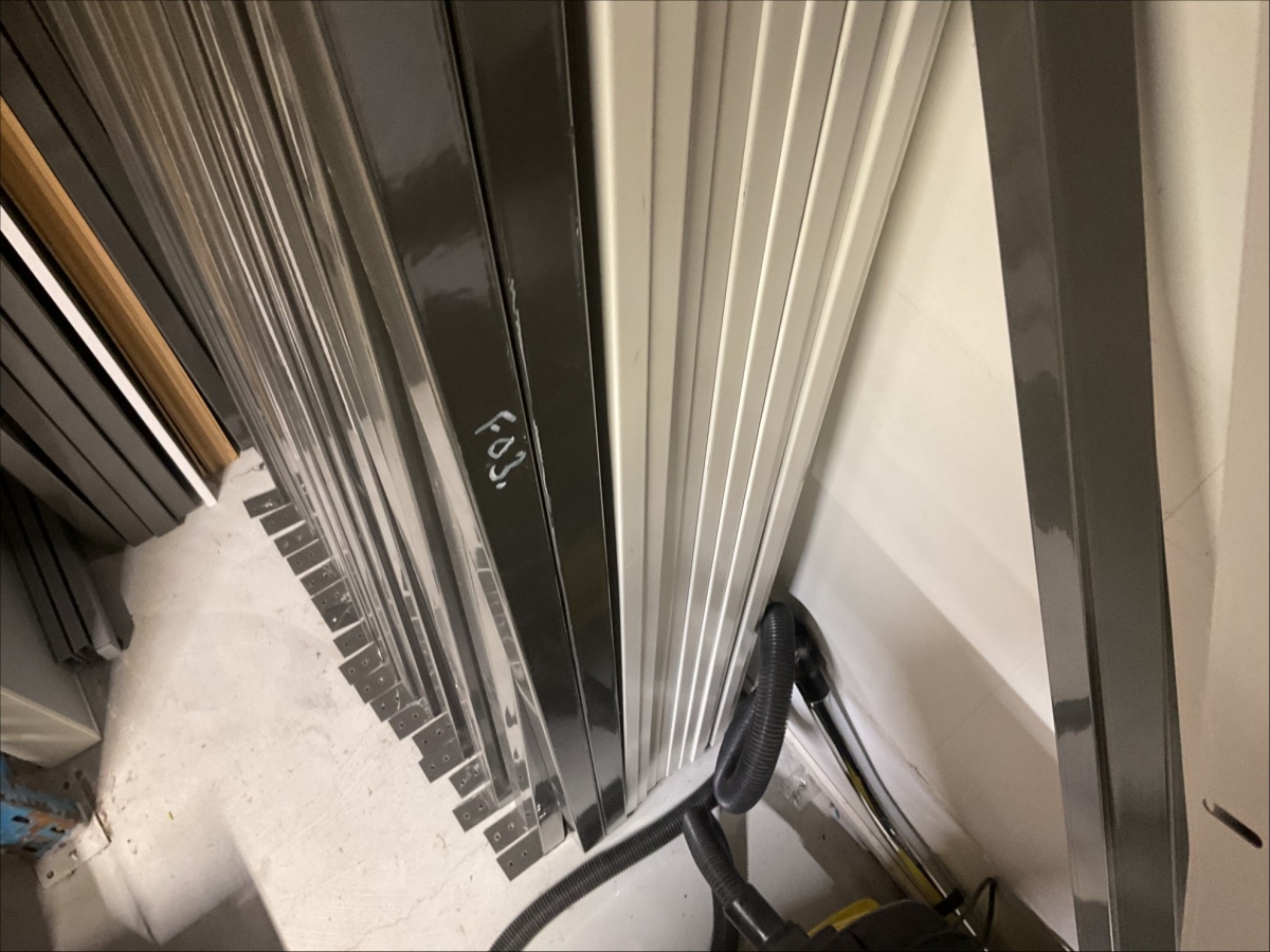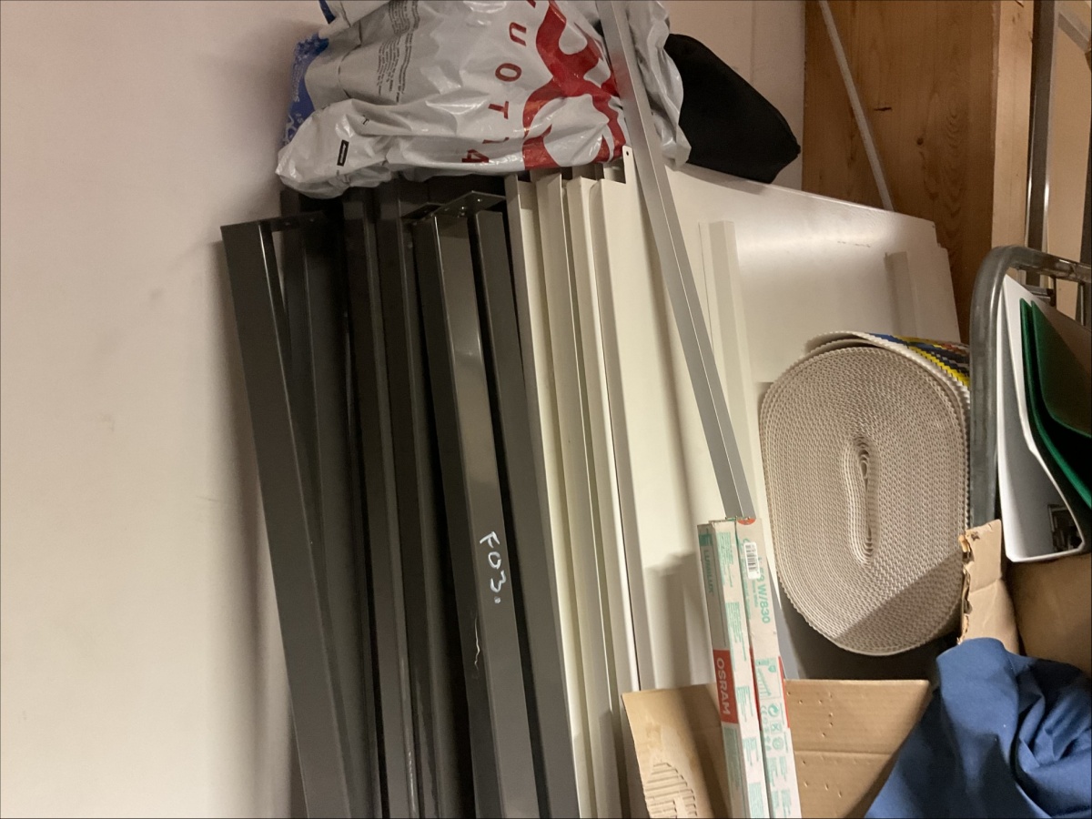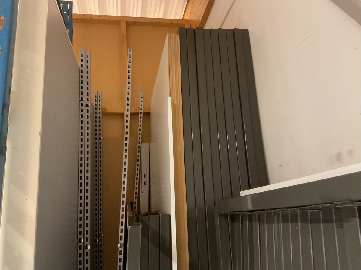 Myyntikohteet » 6. Indoor Group Oy:n konkurssipesä, FORSSA (1512332-9), 04.03.2026 » F03. Kulmauksessa olevat metalliset myymälähyllyt n. 3-4 kappaletta (purettuna)