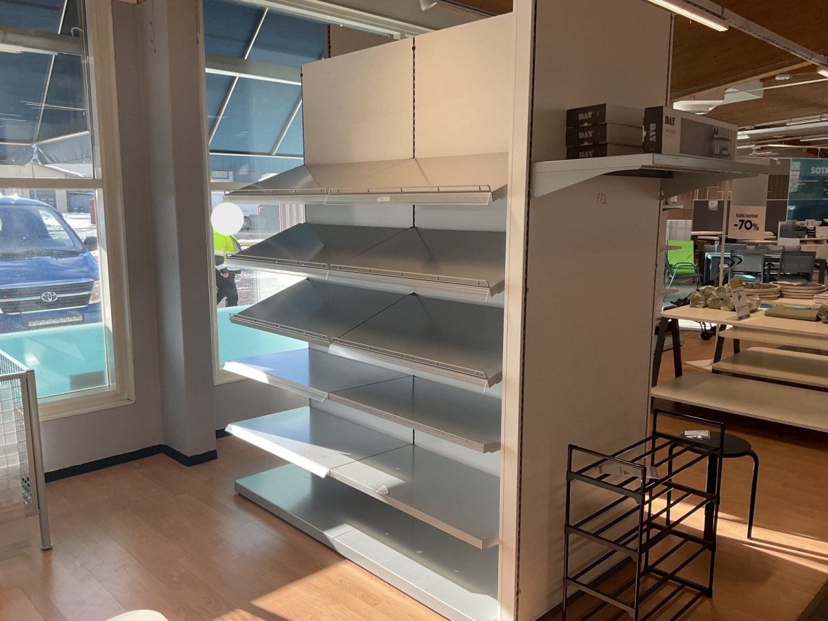 Myyntikohteet » 6. Indoor Group Oy:n konkurssipesä, FORSSA (1512332-9), 04.03.2026 » F13. Kaksipuolinen myymälähylly, myymälähyllyt yhteensä 5-hyllyvälikköä