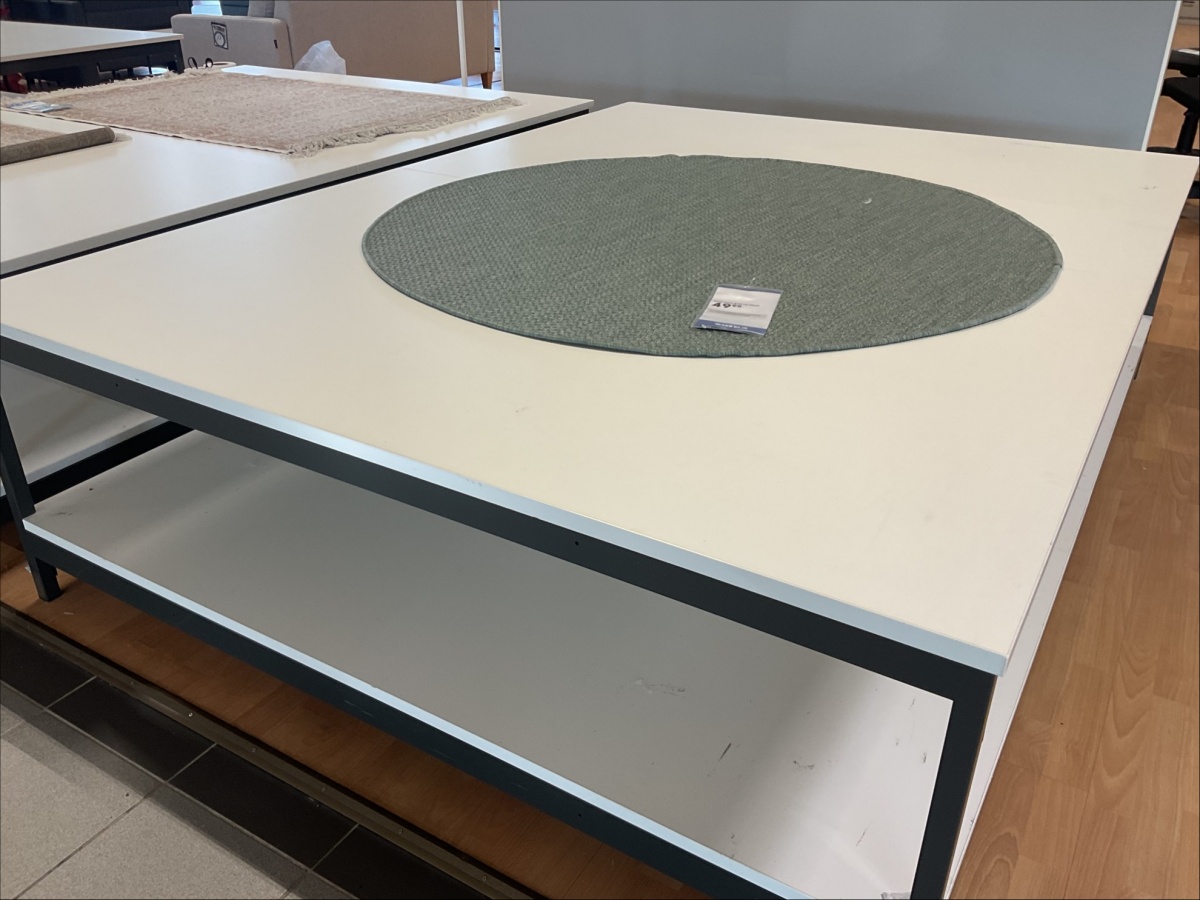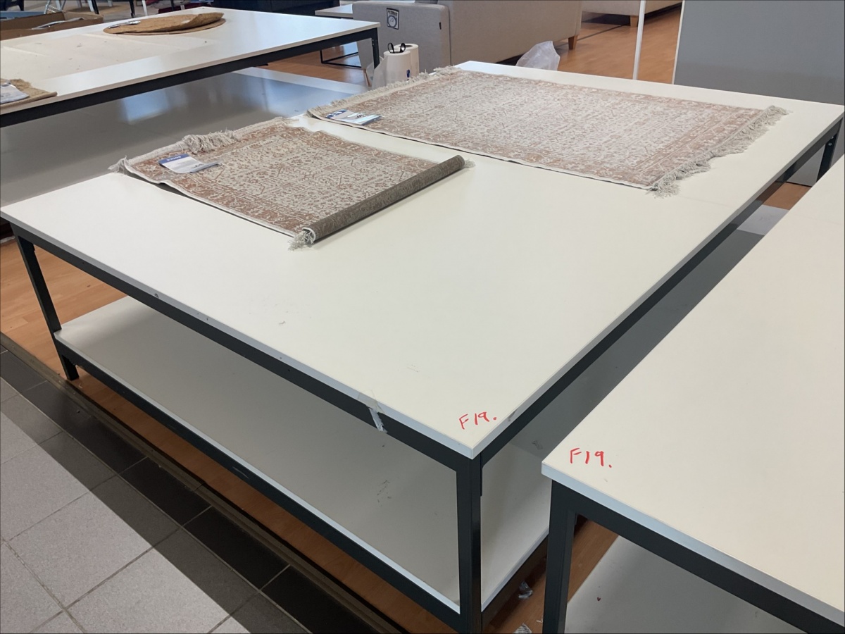 Myyntikohteet » 6. Indoor Group Oy:n konkurssipesä, FORSSA (1512332-9), 04.03.2026 » F19. Mattojen myyntipöydät 2 kappaletta (170 x 230 cm), metalli runko