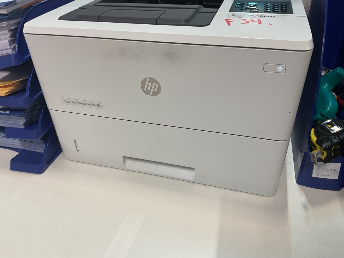 Myyntikohteet » 6. Indoor Group Oy:n konkurssipesä, FORSSA (1512332-9), 04.03.2026 » F34. HP LaserJet Enterprise M506 -tulostin