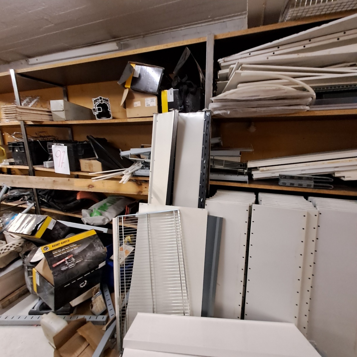 Myyntikohteet » 4. Outokummun Pienkone Oy:n konkurssipesä, OUTUKUMPU (3333390-1), 05.03.2026 » 097. Hyllyn osat, rakennustarvikkeita, kaikenlaista rompetta ja hyöty tavaraa
