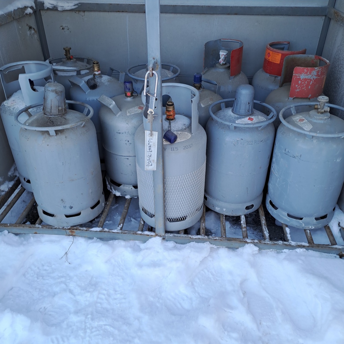 2. Kaapissa olevat kaasupullot (11 kg) yhteensä 13 kappaletta