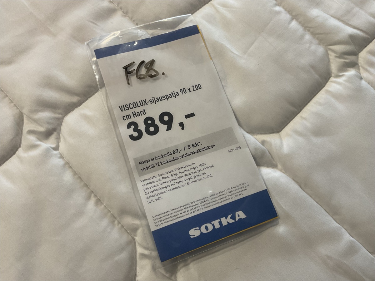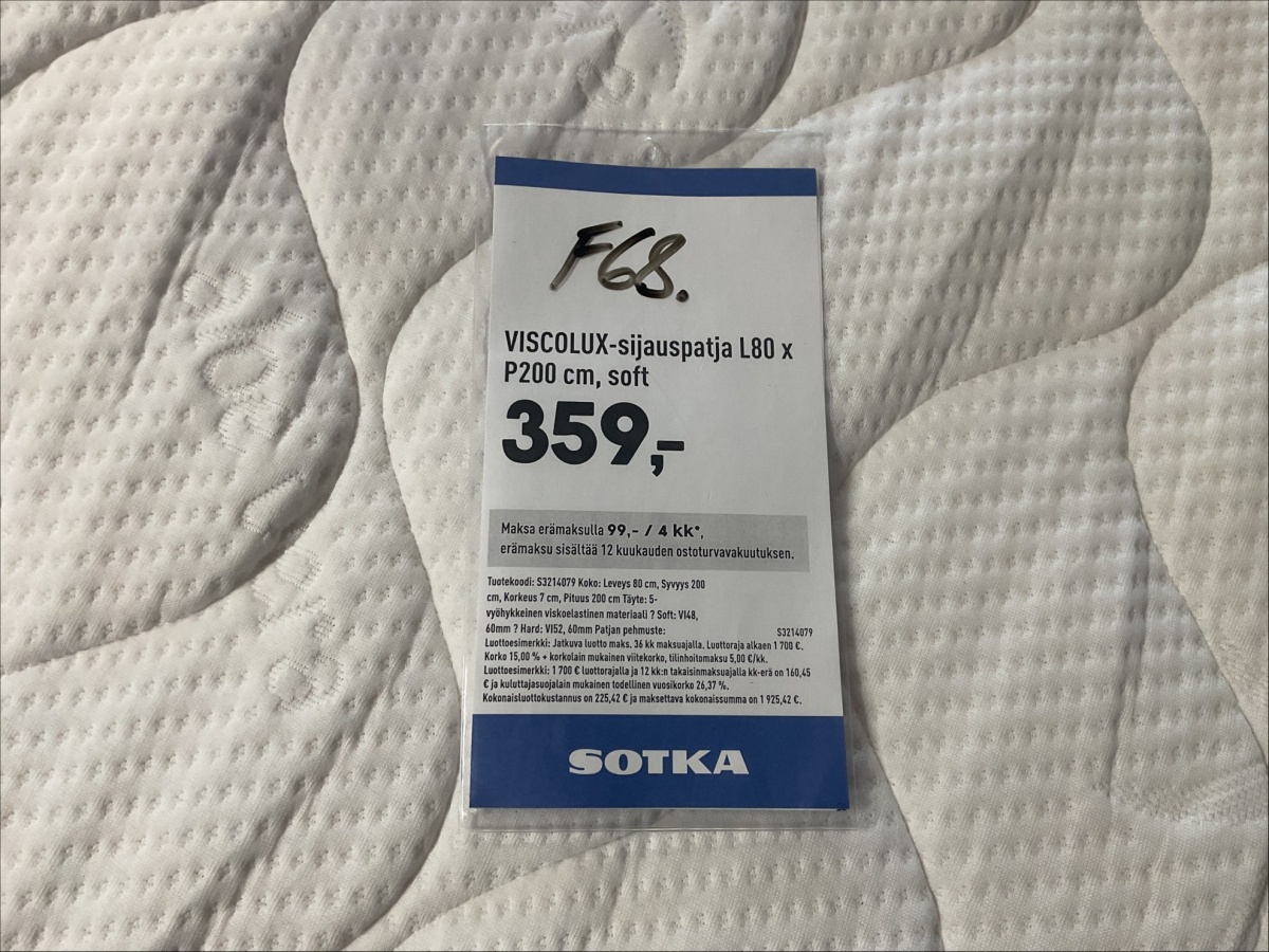 Myyntikohteet » 8. Indoor Group Oy:n konkurssipesä, FORSSA (1512332-9), 09.03.2026 » F68. VISCOLUX-sijauspatja (80 x 200 cm / Soft), VISCOLUX-sijauspatja (90 x 200 cm / Hard)