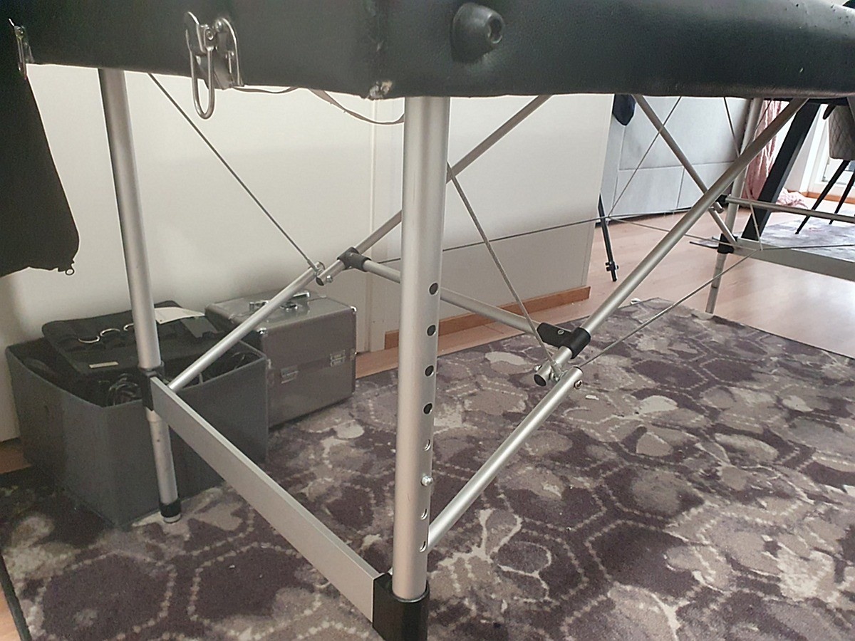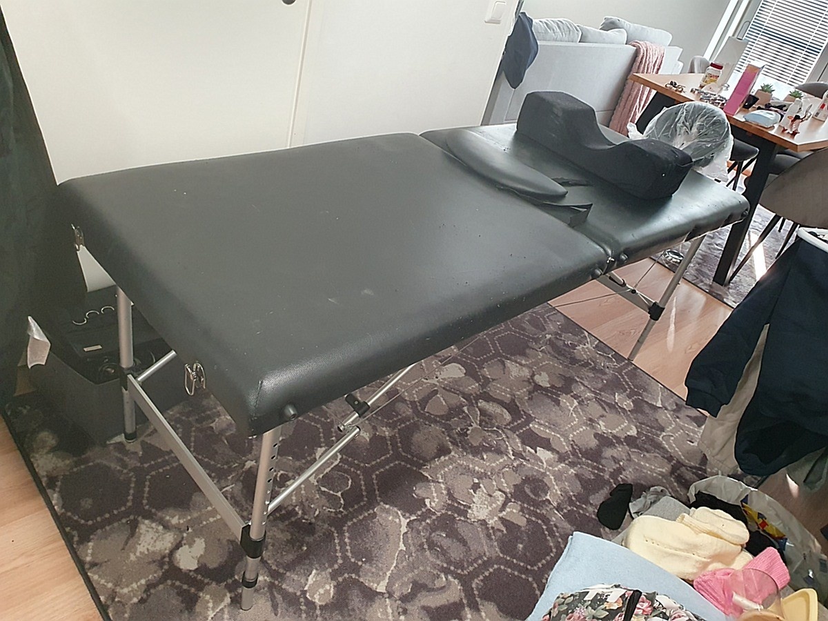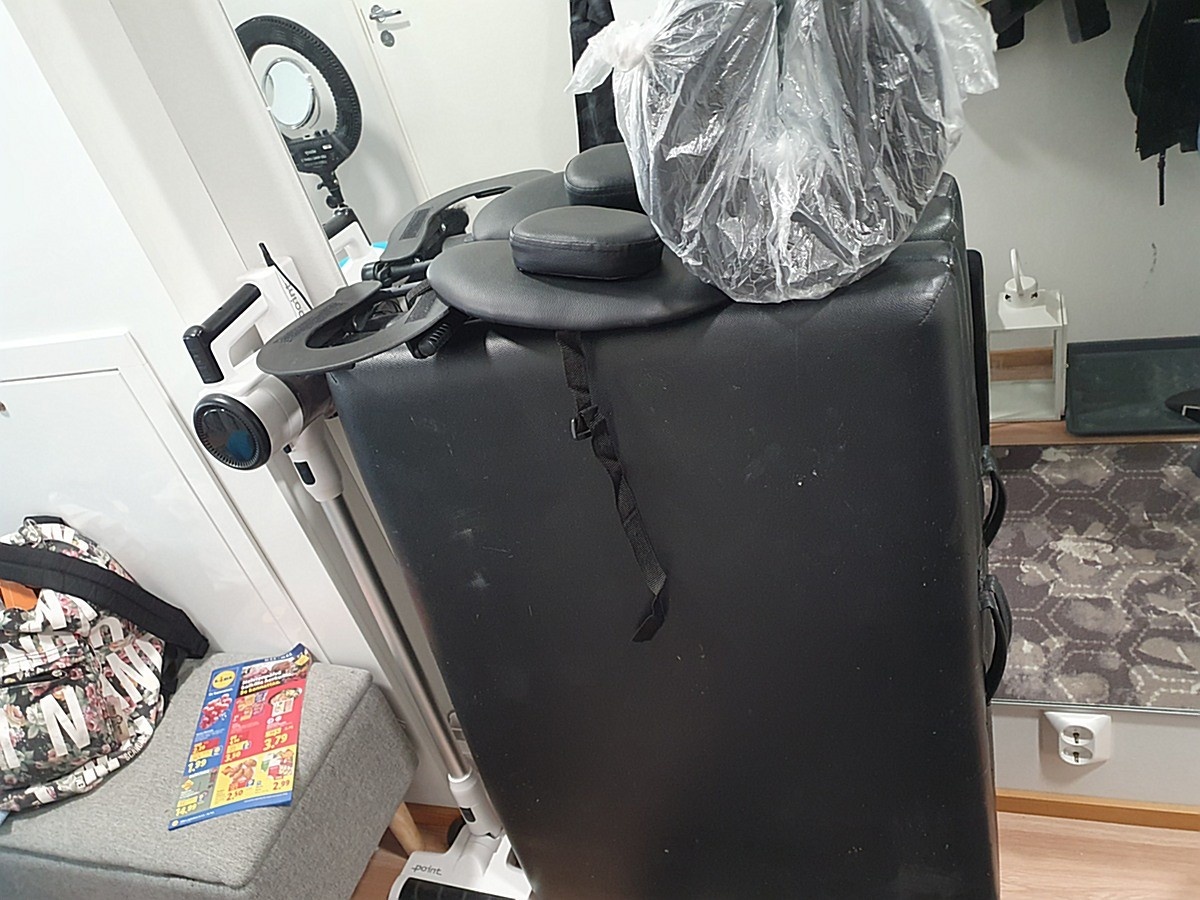 Kauneudenhoitotarvikkeita (ripset ja hiukset), led työskentelyvalo ja hierontapöytä