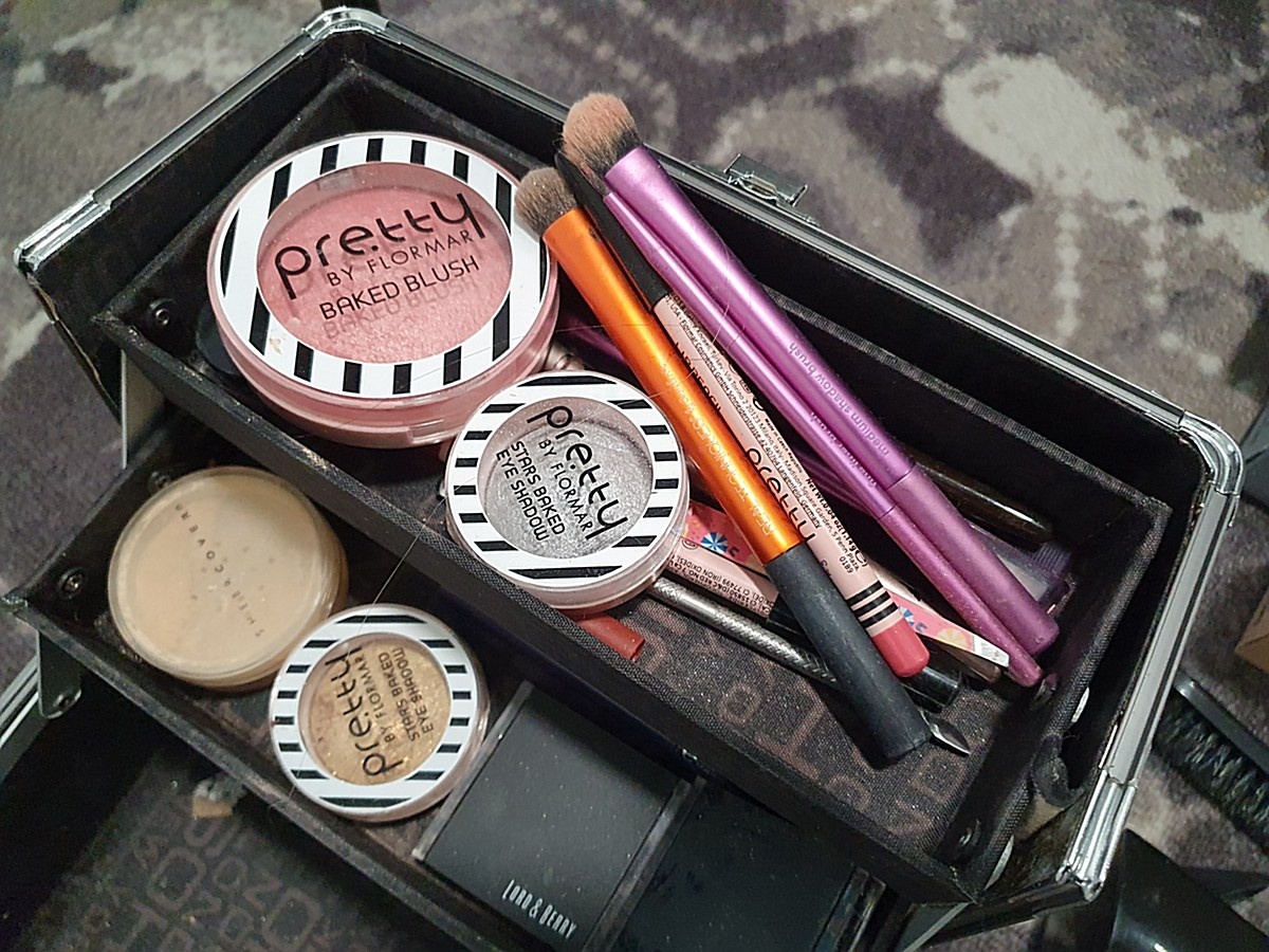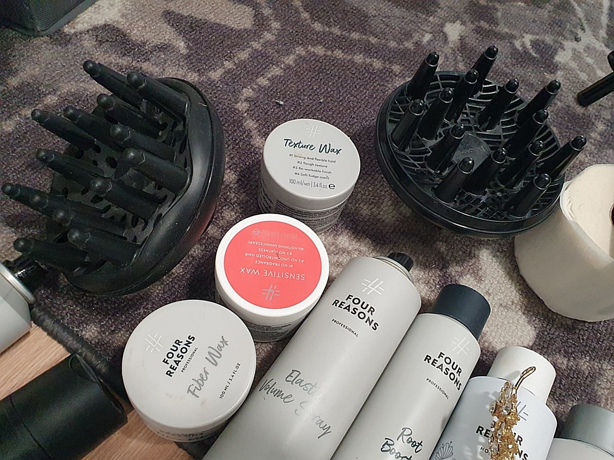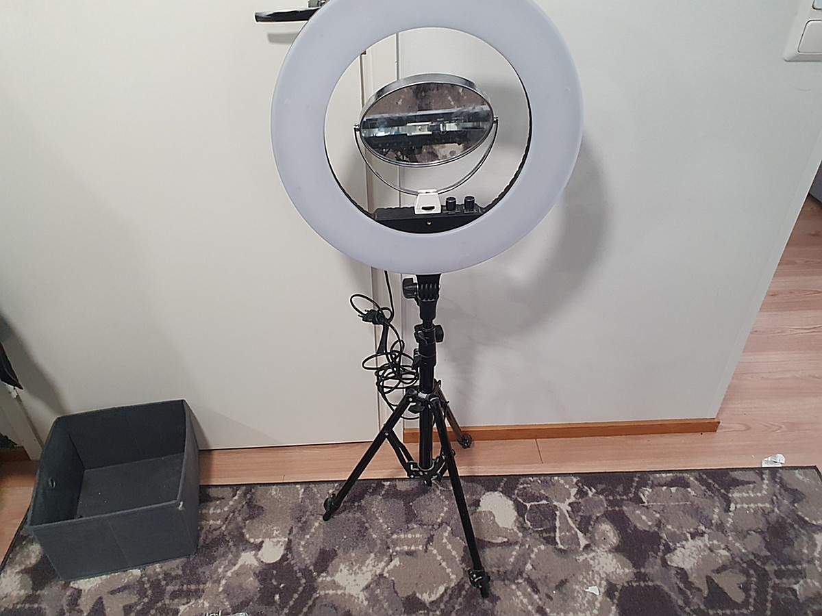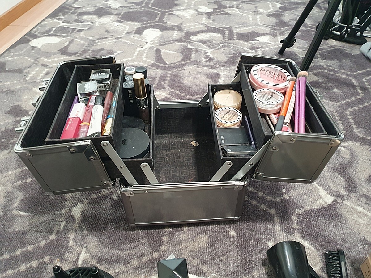 Kauneudenhoitotarvikkeita (ripset ja hiukset), led työskentelyvalo ja hierontapöytä