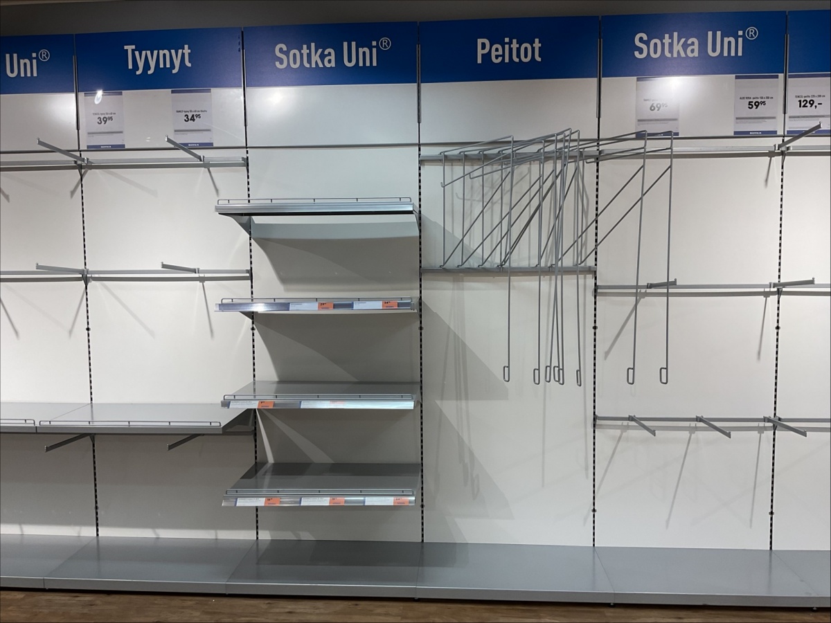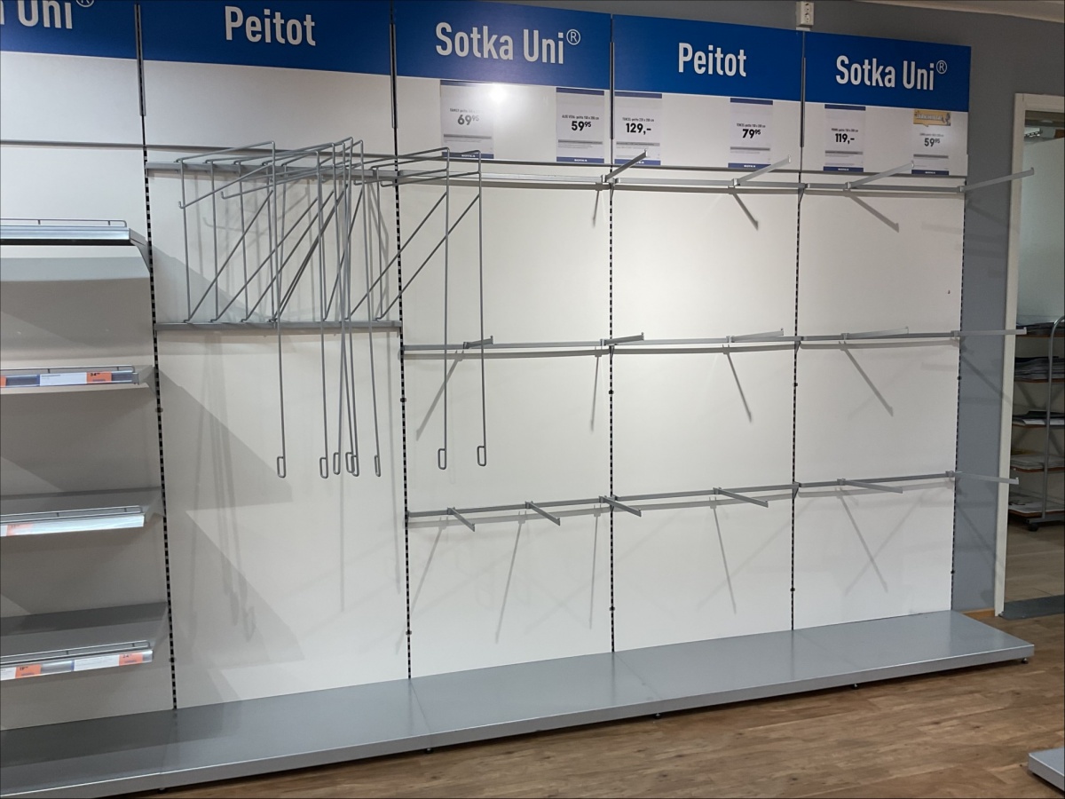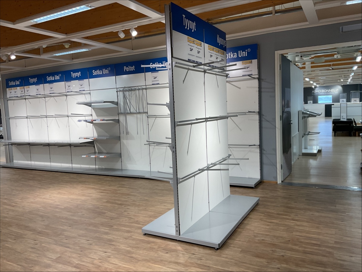 Myyntikohteet » 11. Indoor Group Oy:n konkurssipesä, SALO (1512332-9), 12.03.2026 » Z12. Kaksipuoleinen myymälähylly (2-hyllyvälikköä) ja myymälähylly 9-hyllyvälikköä