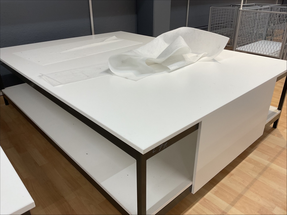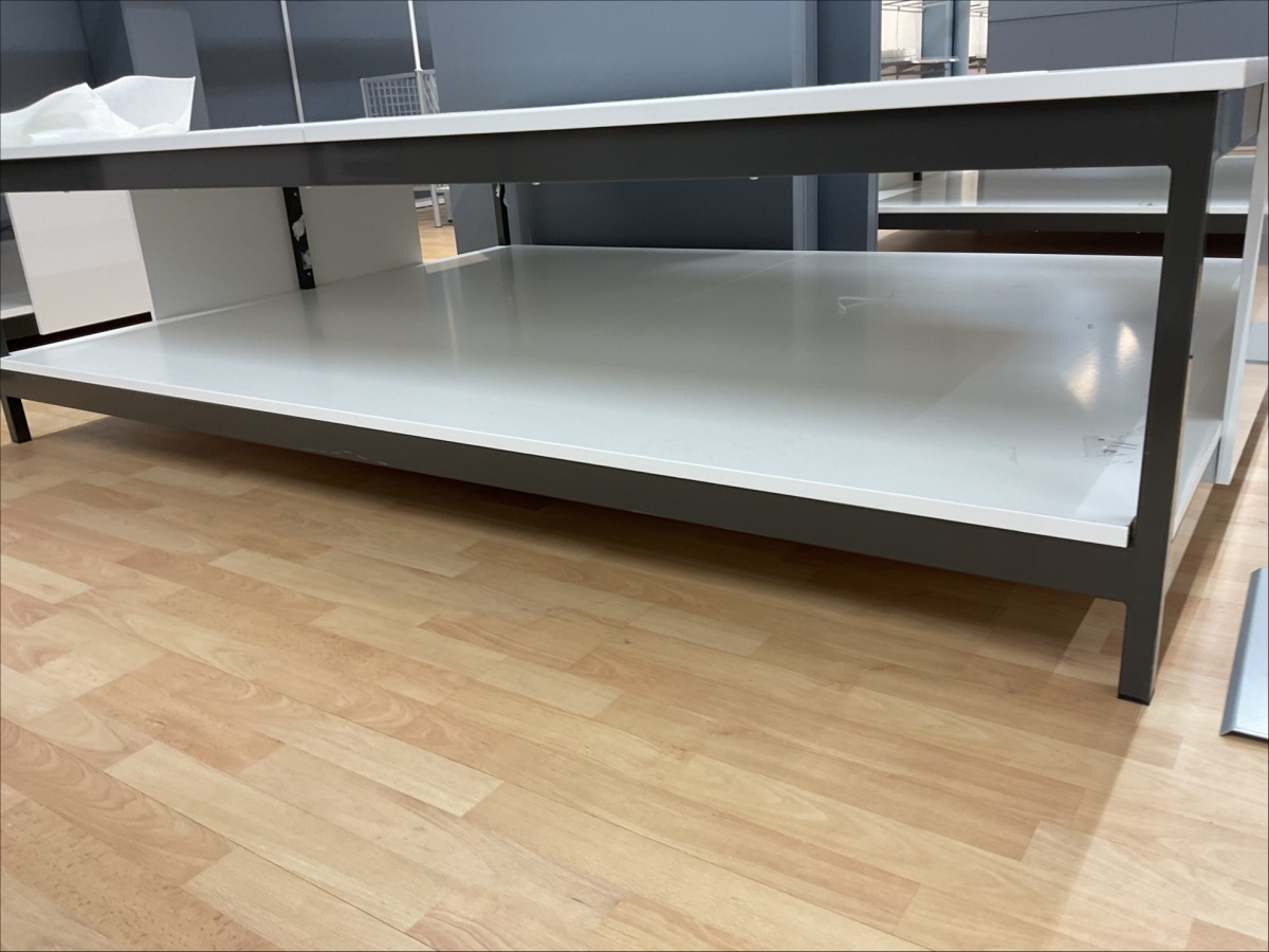 Myyntikohteet » 13. Indoor Group Oy:n konkurssipesä, LOHJA (1512332-9), 12.03.2026 » L11. Mattojen myyntipöydät 2 kappaletta (170 x 230 cm), metalli runko