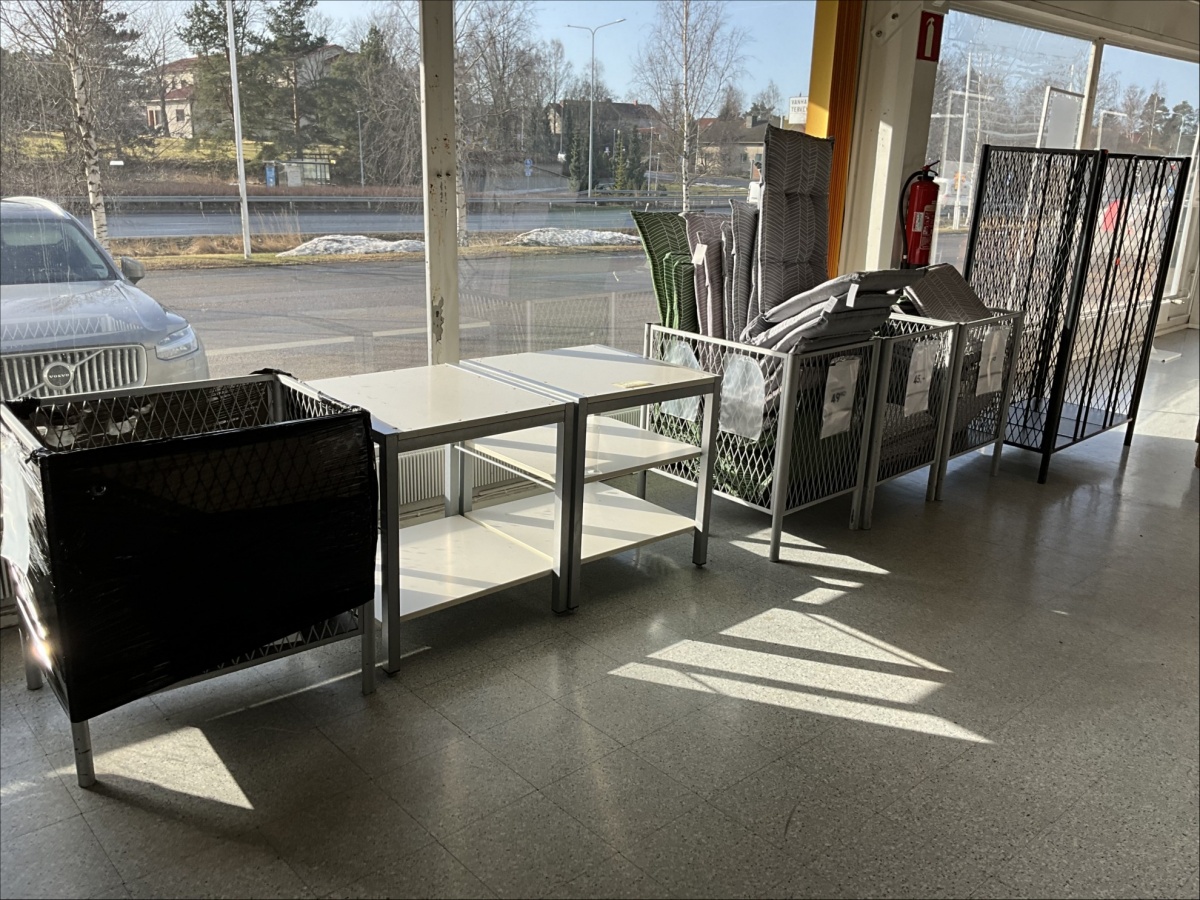 Myyntikohteet » 12. Indoor Group Oy:n konkurssipesä, RAUMA (1512332-9), 15.03.2026 » R02. Myyntihäkit / lankakorit 5 kappaletta, myyntipöydät 2 kappaletta