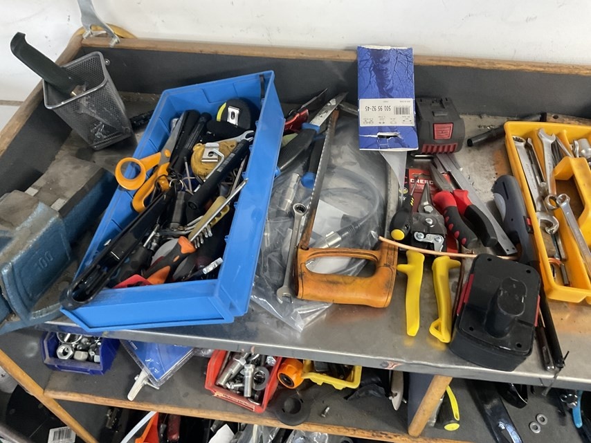 Työkalukärry ja työpöytä jossa: