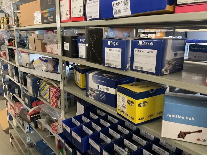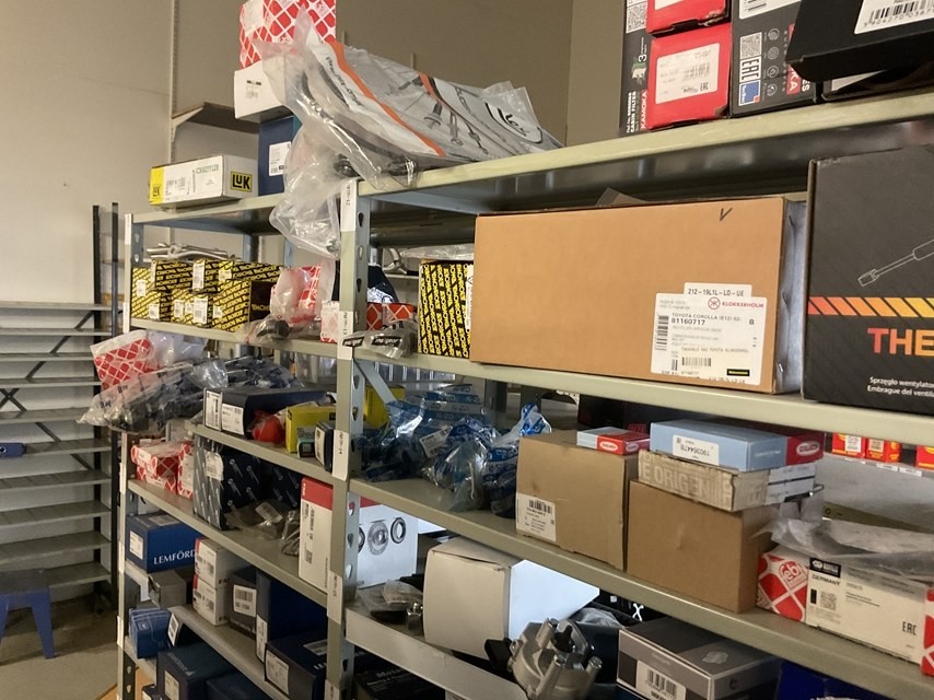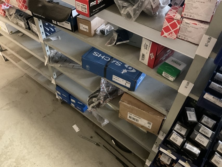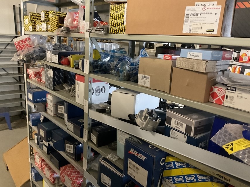 Myyntikohteet » Kokemäen Varaosa / Kovatech Oy:n konkurssipesä, KOKEMÄKI (2136465-5), 13.03.2026 » 11. Auton alustan, pyörän ja jarrujärjestelmän varaosat kolmessa hyllyvälikössä, Yhteensä n. 235 – 380 kappaletta