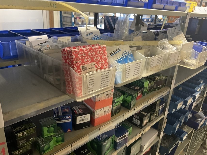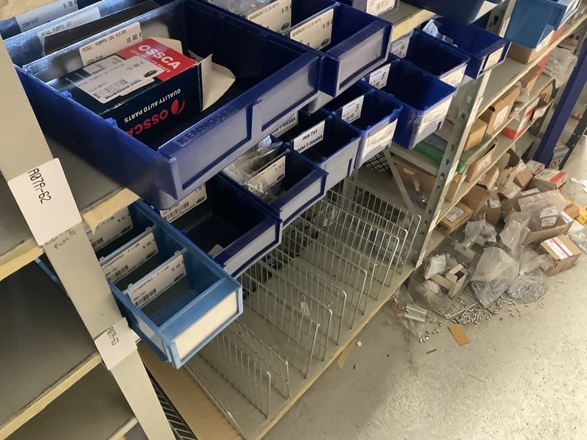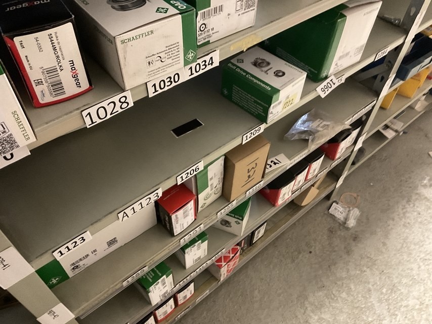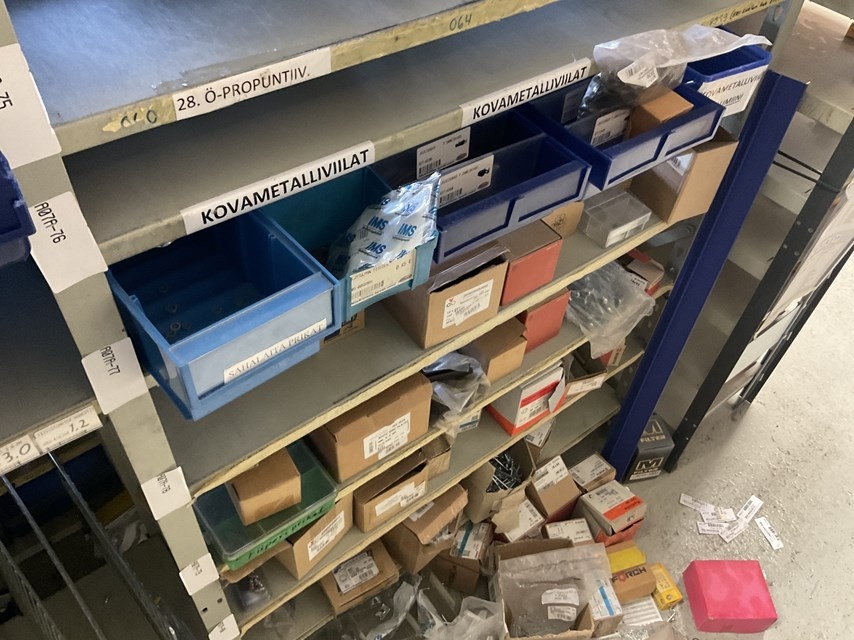 Myyntikohteet » Kokemäen Varaosa / Kovatech Oy:n konkurssipesä, KOKEMÄKI (2136465-5), 13.03.2026 » 12. Moottorin huolto-osahylly, laakereita, kiinnitystarvikkeita ja pieniä varaosia ym. Yhteensä 3 hyllyvälikkä