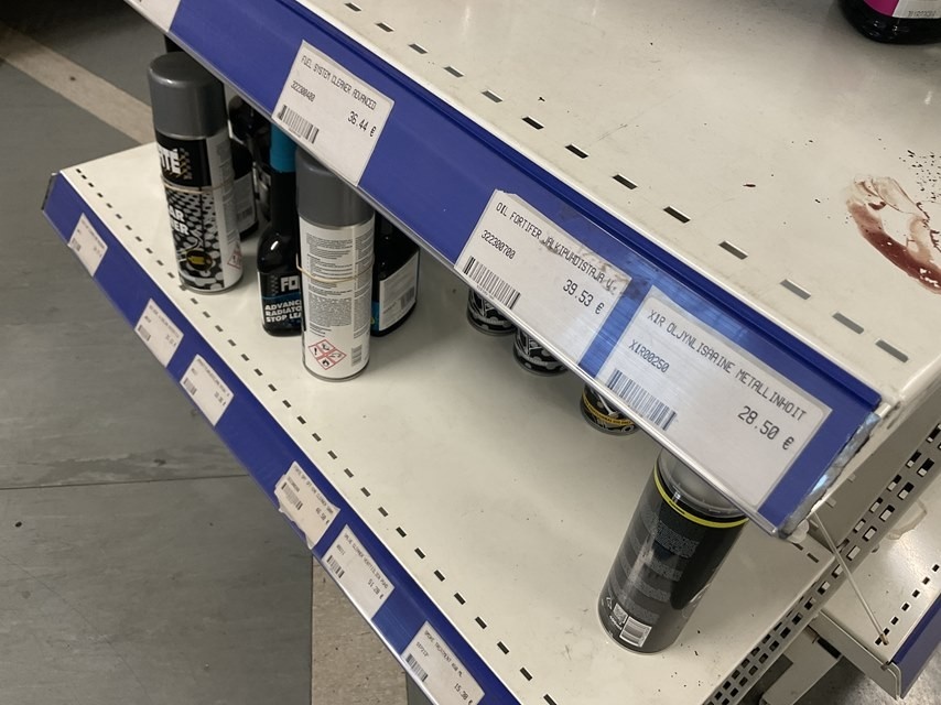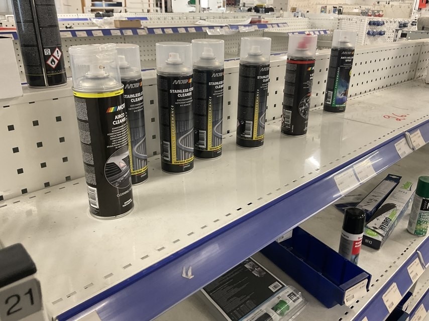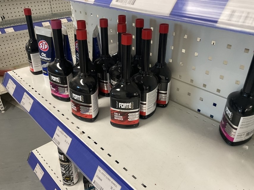 Myyntikohteet » 2. Kokemäen Varaosa / Kovatech Oy:n konkurssipesä, KOKEMÄKI (2136465-5), 14.03.2026 » 26. Myymälähyllyssä olevat autonhoitokemikaalit ja öljyt