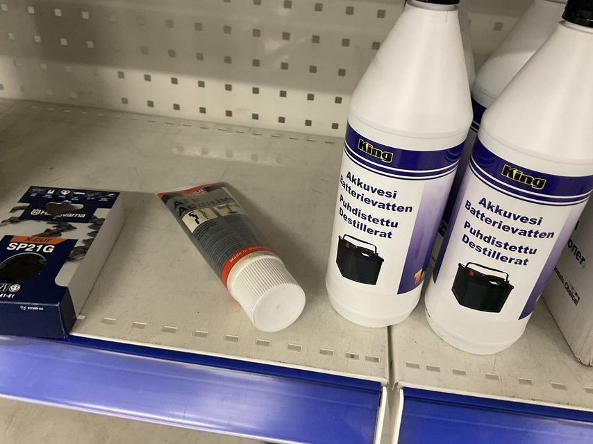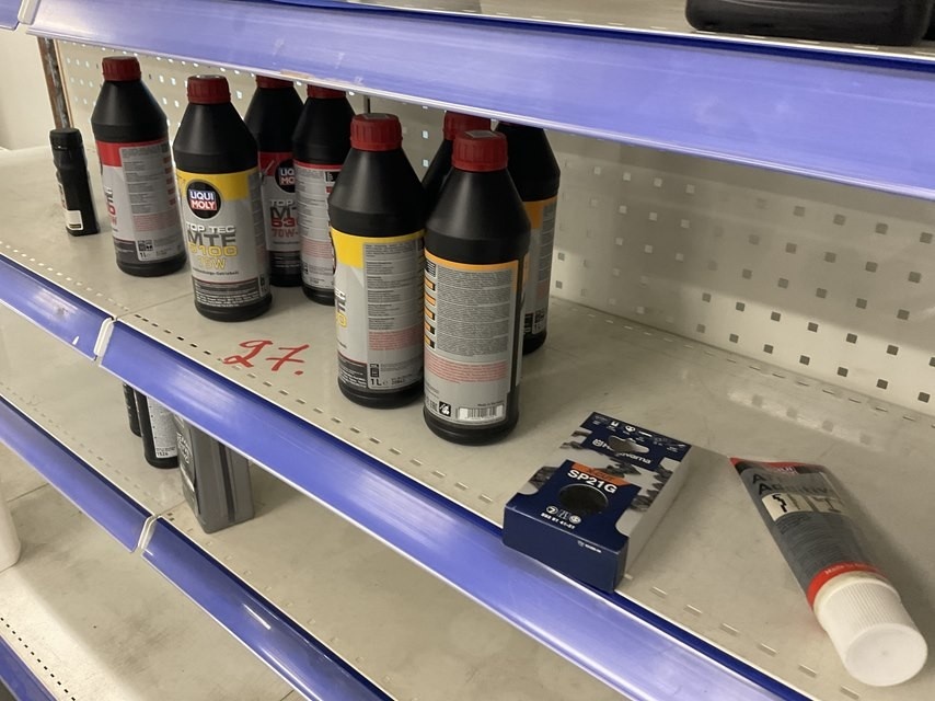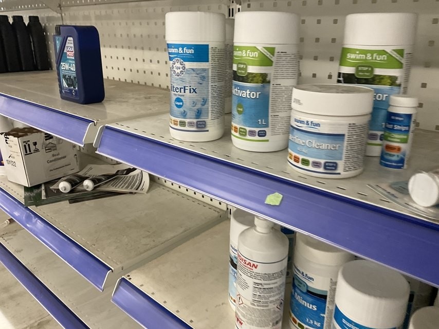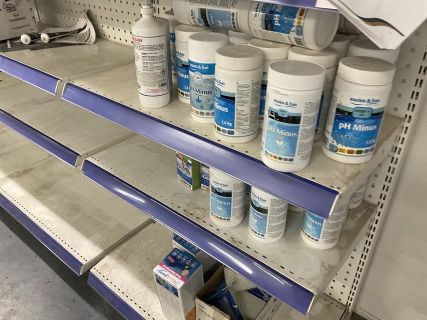 Myyntikohteet » 2. Kokemäen Varaosa / Kovatech Oy:n konkurssipesä, KOKEMÄKI (2136465-5), 14.03.2026 » 27. Myymälähyllyssä olevat Uima-altaan kemikaalit ja öljyt ym.