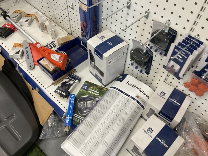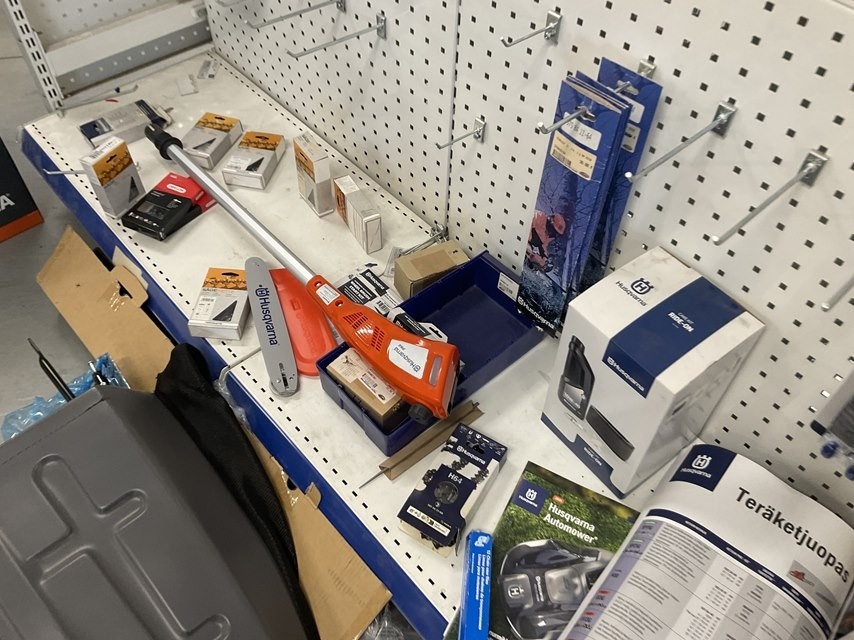 Myyntikohteet » 2. Kokemäen Varaosa / Kovatech Oy:n konkurssipesä, KOKEMÄKI (2136465-5), 14.03.2026 » 28. Myymälähyllyssä olevat Husqvarna tarvikkeet ja varaosat