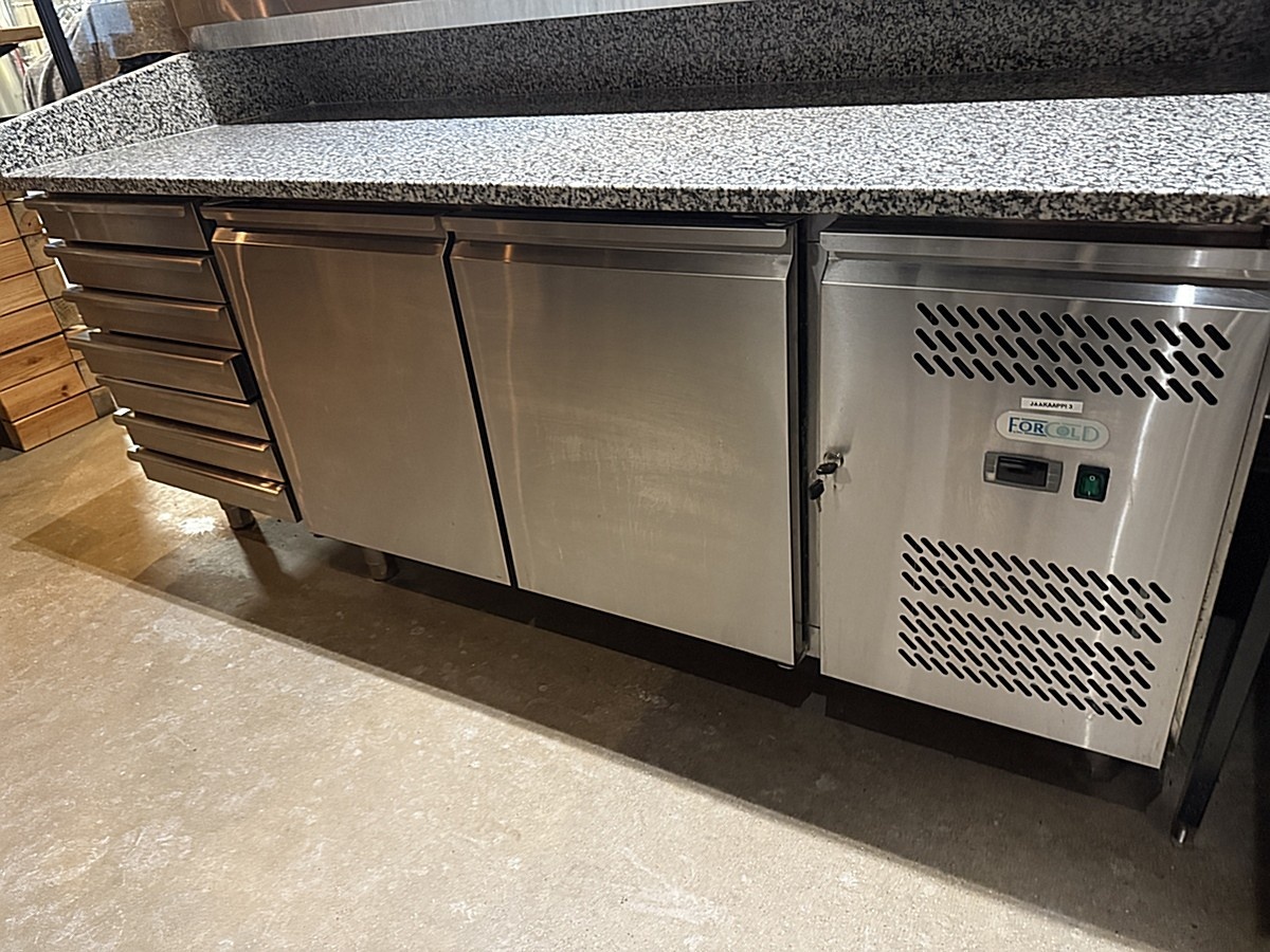 Myyntikohteet » 5. Mad Finn Oy:n konkurssipesä (3166037-8), TAMPERE, 16.03.2026 » P02. Pizzatyöpöytä kylmä ForCold G-PZ2610TN-FC, kivitaso + kylmävitriini