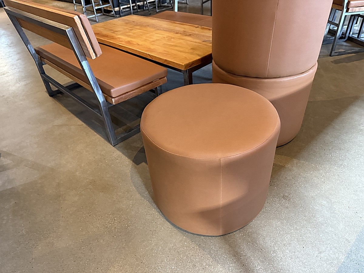 - Pyöreät pöydät 3 kappaletta ja nahkapäällysteiset tuolit 12 kappaletta