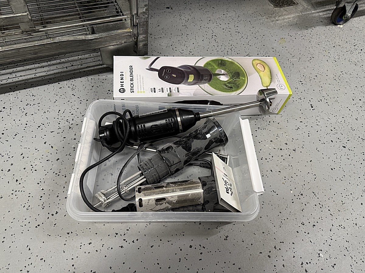 Myyntikohteet » 6. Mad Finn Oy:n konkurssipesä (3166037-8), TAMPERE, 16.03.2026 » P23. Makkaralämmitin, vaaka, airfryer ja saivasekoitin