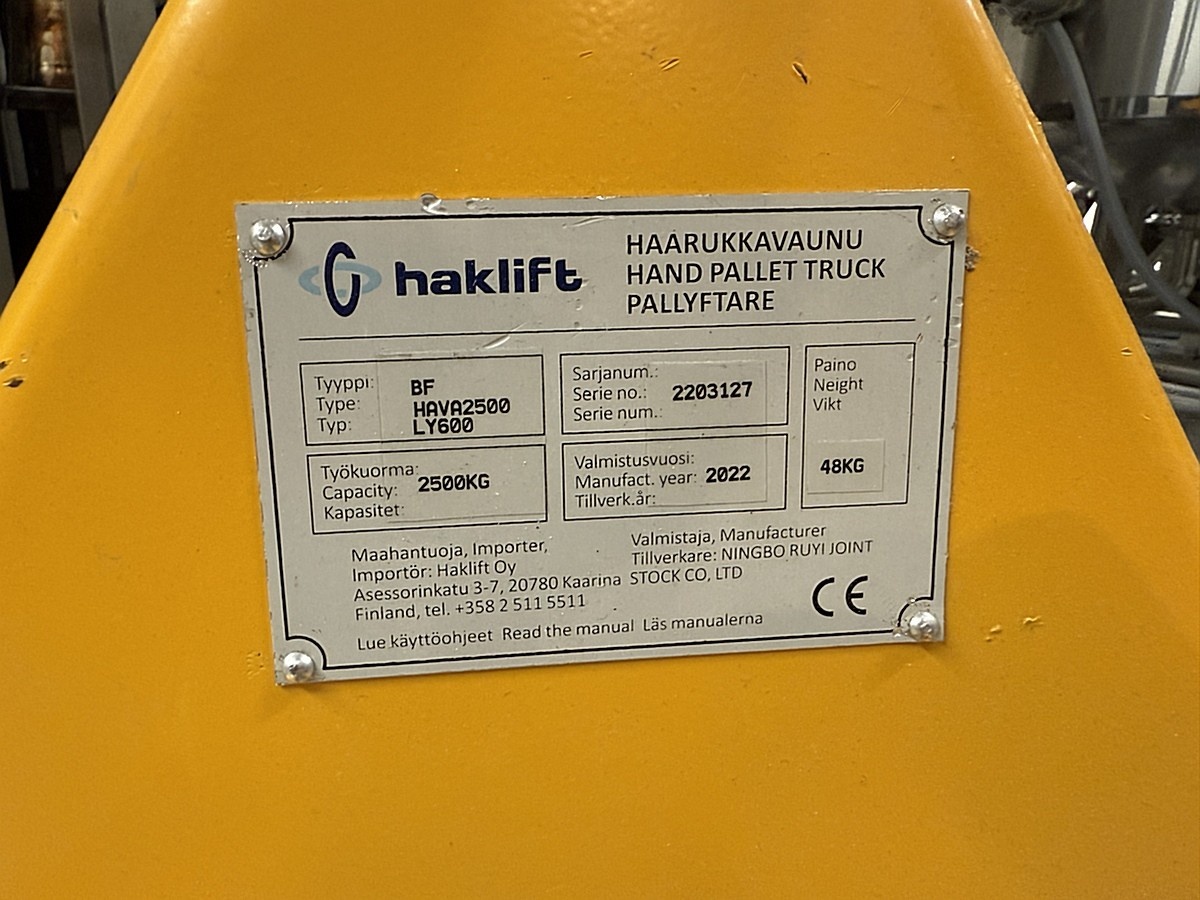 Myyntikohteet » 6. Mad Finn Oy:n konkurssipesä (3166037-8), TAMPERE, 16.03.2026 » P32. Haarukkavaunu Hakilift 2500kg (lyhytmalli 600 mm)