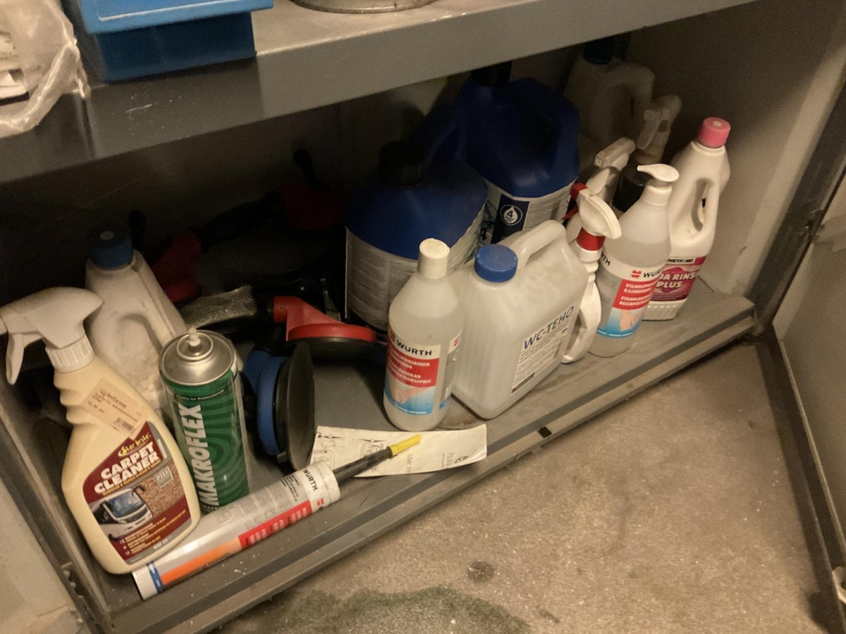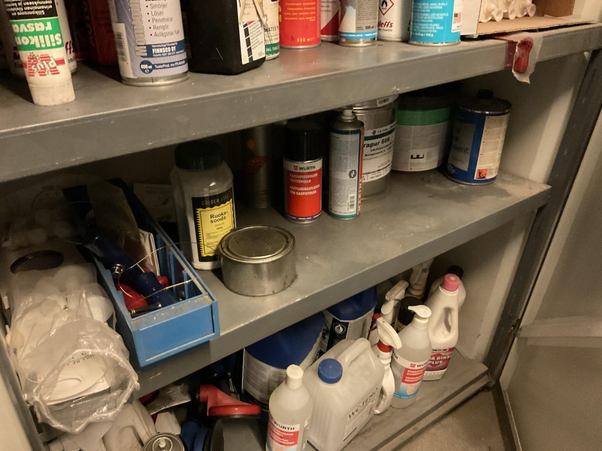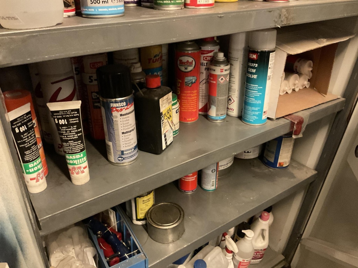 Myyntikohteet » 1. Best-Caravan Oy:n konkurssipesä, HYVINKÄÄ (1824257-7), 18.03.2026 » 17. Peltikaappi ja puhdistus- ja hoitoaineet yms.