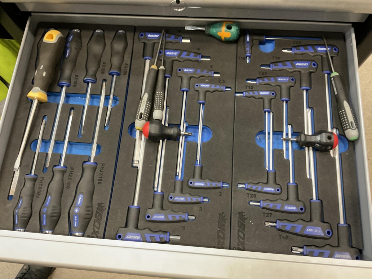 Hyvin varusteltu Boxo työkaluvaunu jossa: